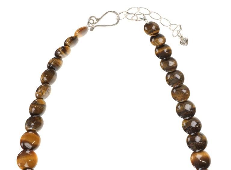 Featured in this lot is this fancy disk Tiger's Eye graduated jewelry set. There is a necklace and earrings in this collection. The necklace shows a graduated design with disk tiger's eye stones and shows a sterling silver chain. The earrings show oval tiger's eye stones set to a lobster clasp. Both are marked .925. The condition of this jewelry set is good with no obvious signs of damage and shows good overall condition. The measurements of this of this necklace is 21" x 1" and the earrings measurements are 2" x 5/8". The collective weight of this jewelry set is 66g.
