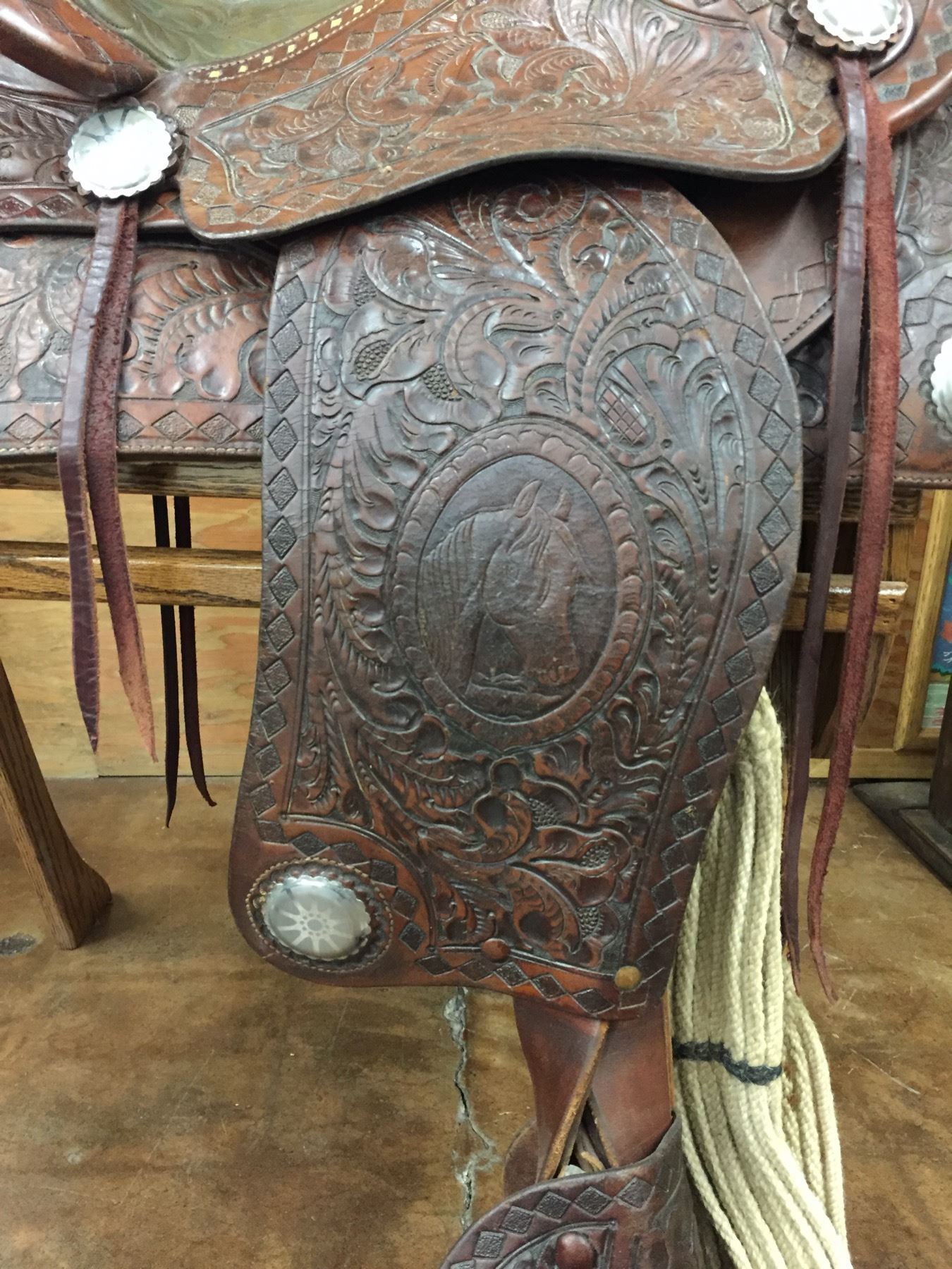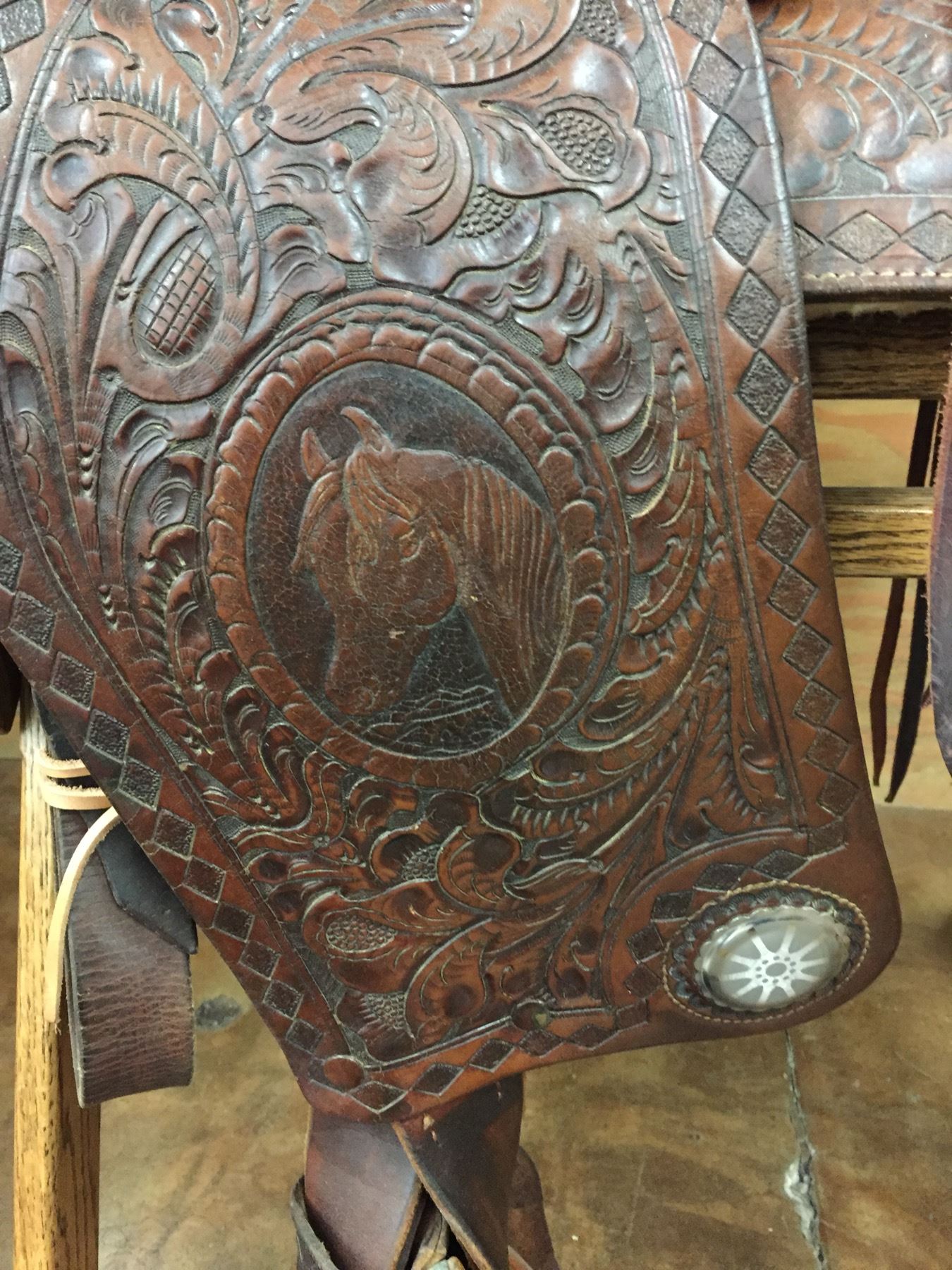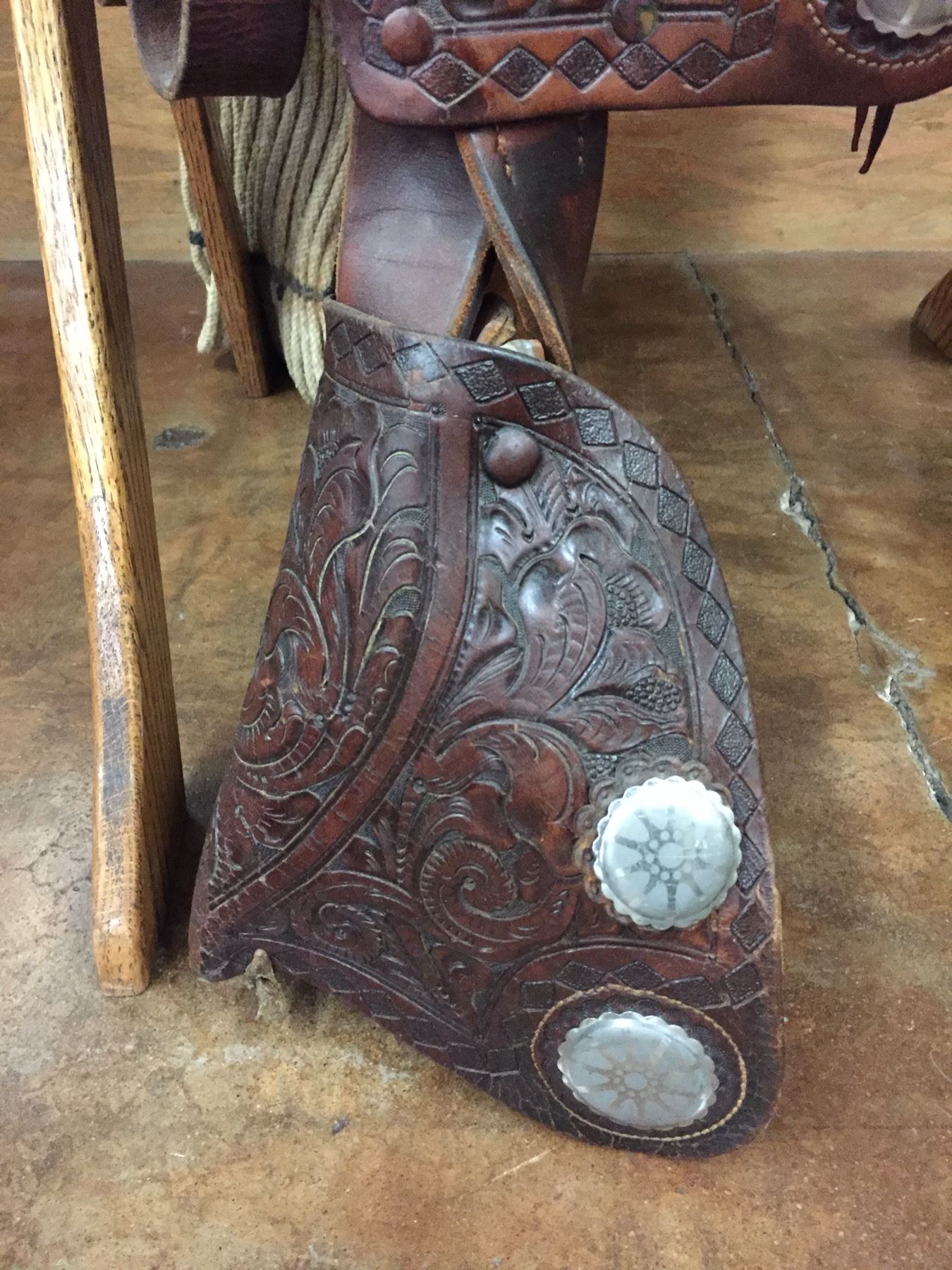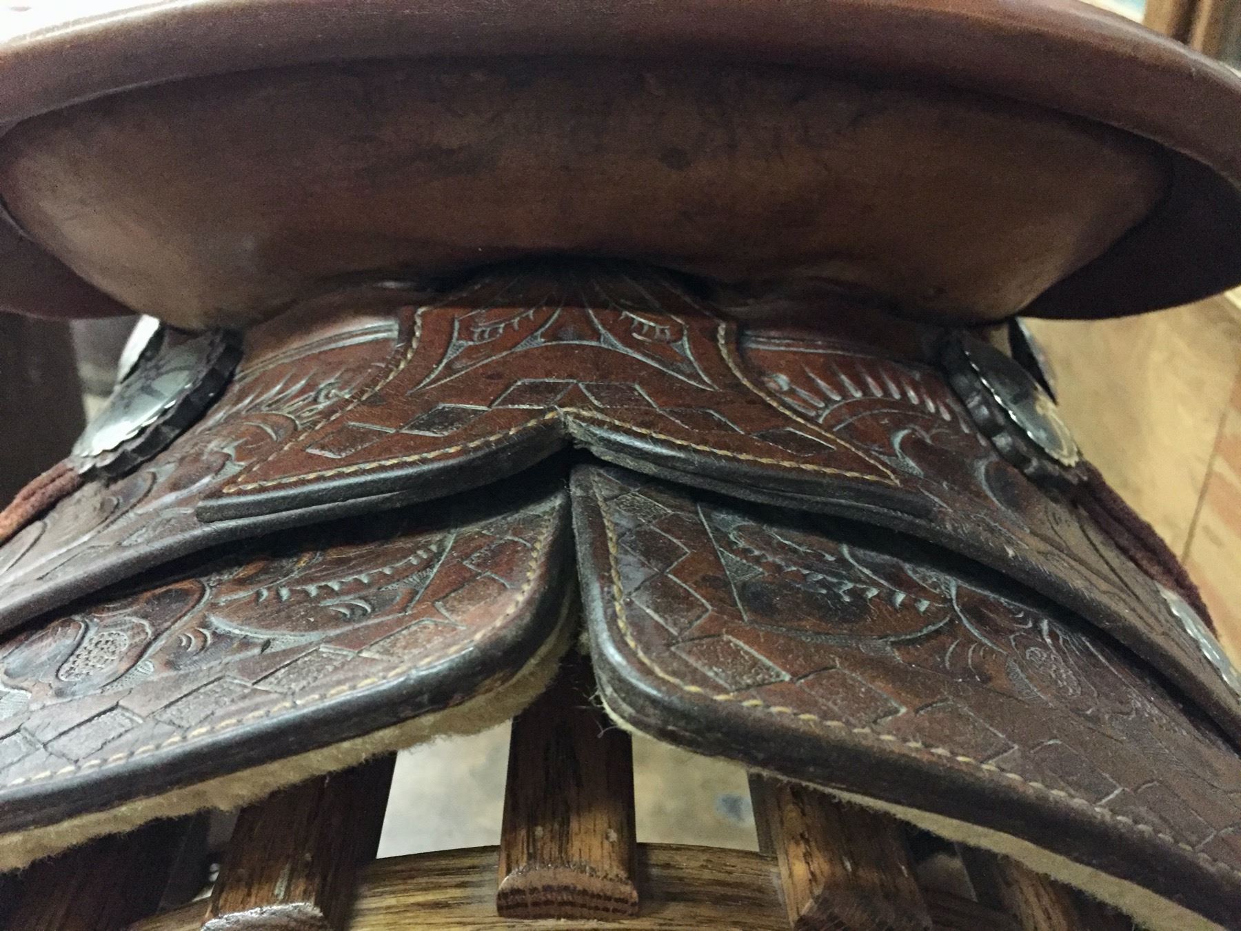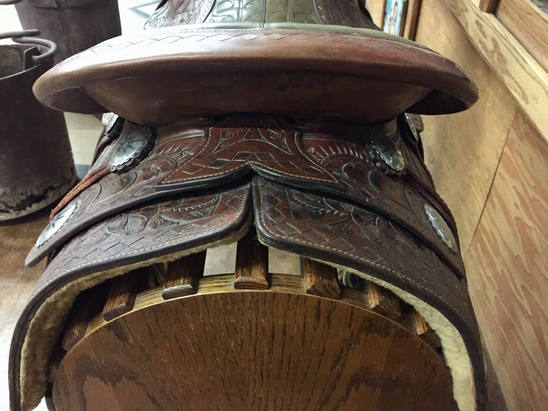 Description: Offered for sale in this lot is a fancy F. O. Baird handmade saddle. This saddle features nicely tooled leather with horse’s heads on the stirrup leathers and decorative, scalloped edge conchos throughout. It is an Astride style of saddle with Cheyenne rolls. Maker: F.O. Baird. Approx. Age: Vintage. Size: seat is 15 inches. Condition: Very good for its age, some wear expected. Please look closely at the pictures - they are an important part of our description. Shipping: There will be a $20 handling, packaging fee for shipping this lot. The actual cost of postage will be added on top of that.