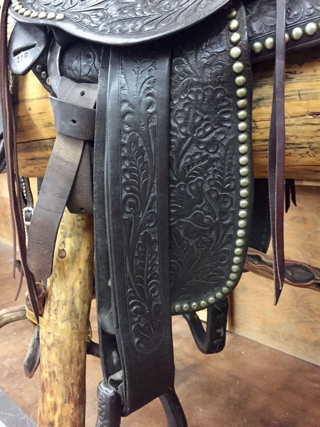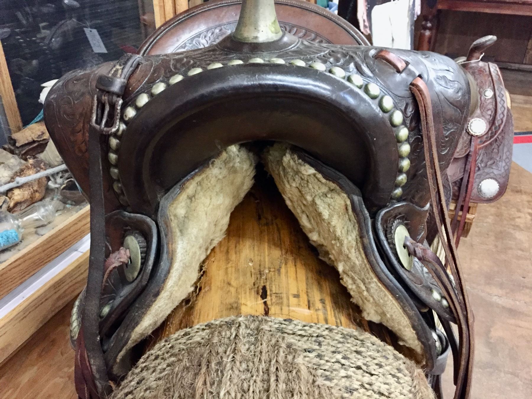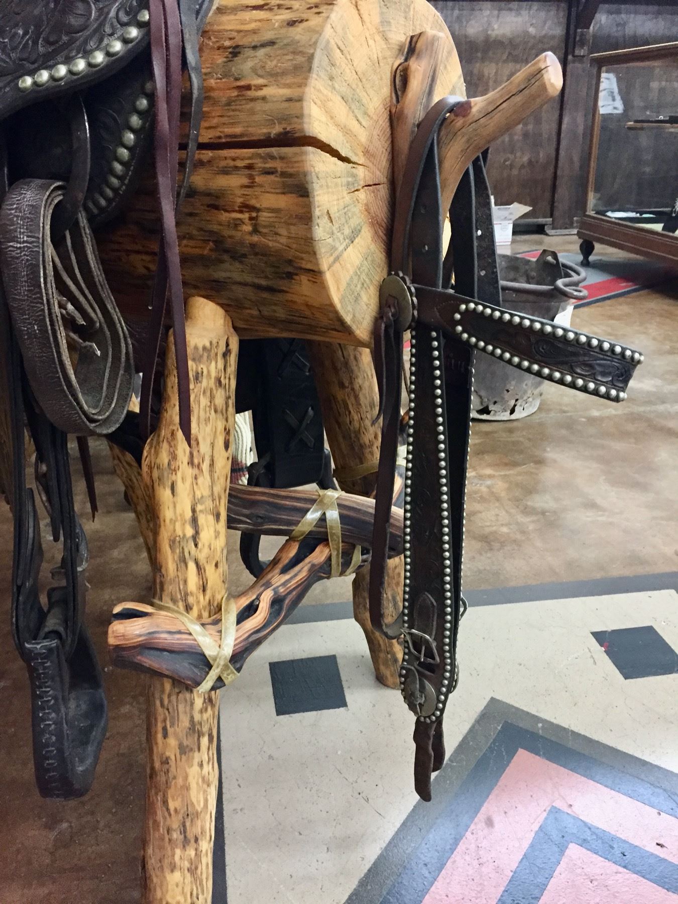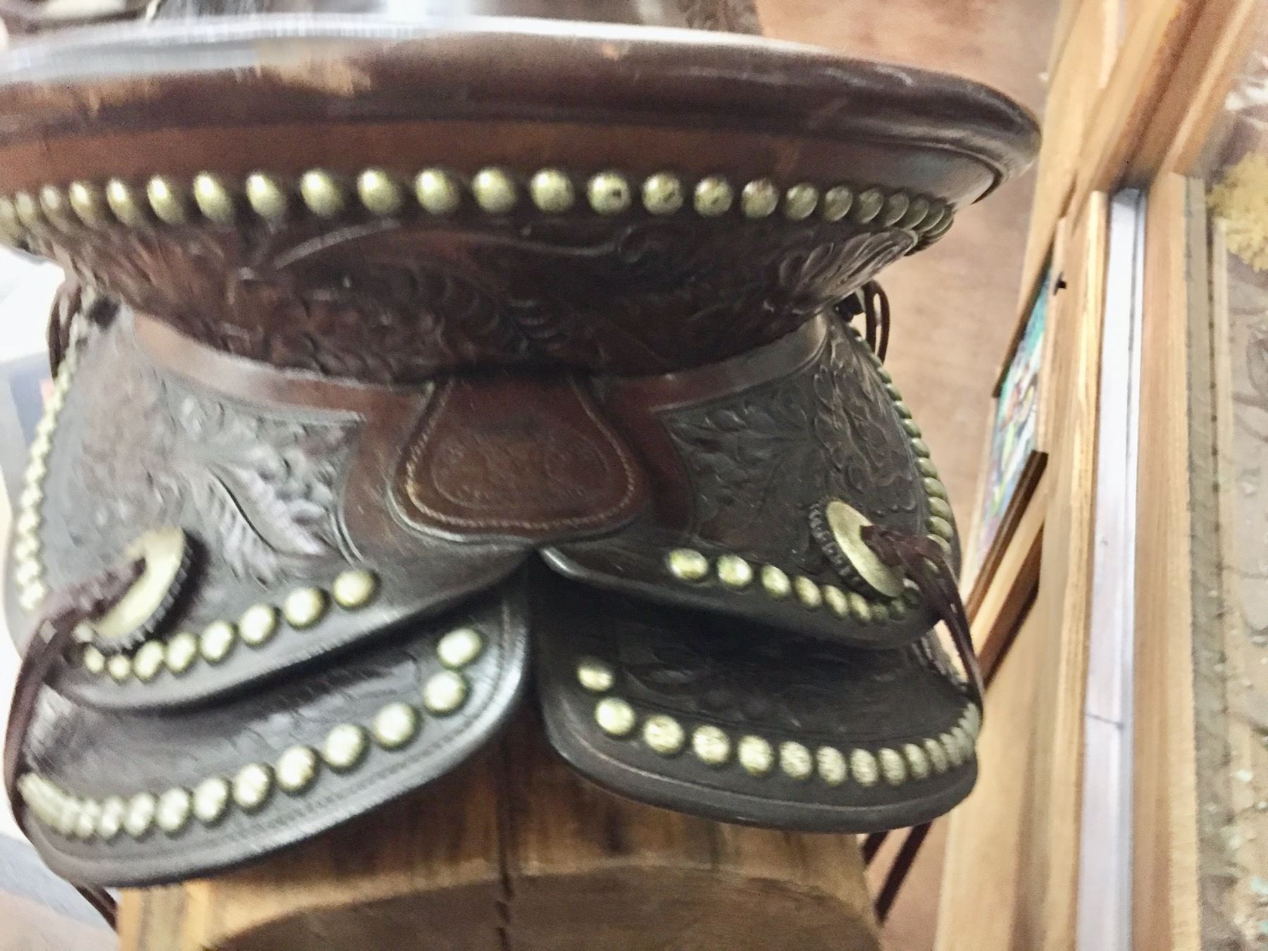 Description: For sale in this is lot is a fancy, Fred Mueller saddle and bridle. This fine example has great tooling and studs accenting it. It comes with an old mohair cinch which may or may not be original to the piece, but certainly is of the same time period. The stand can go with it if you can pick it up within a week. We will not ship the stand or hold it for long. Maker: Both the saddle and bridle are well marked by Fred Mueller, Denver Colo.. Approx. Age: Early 1900s. Size: Saddle seat is 14 inches. Condition: Good for their age, normal wear expected. Please look closely at the pictures - they are an important part of our description. Shipping: There will be a $20 handling, packaging fee for shipping this lot. The actual cost of postage will be added on top of that.