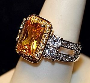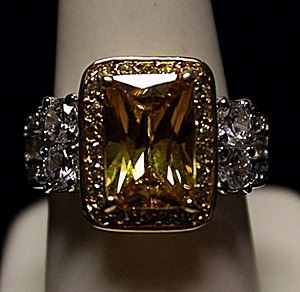 Fancy Golden Lab Sapphire & White Topaz SS Ring. (553L) Gemstones twt approx. 15cts. Sterling Silver.