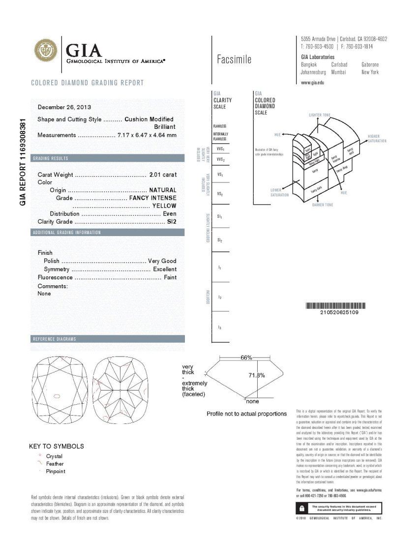 Fancy Intense Yellow Diamond SI2 2.01 carats.....natural 100% earth mined; no treatment in any way; GIA certified