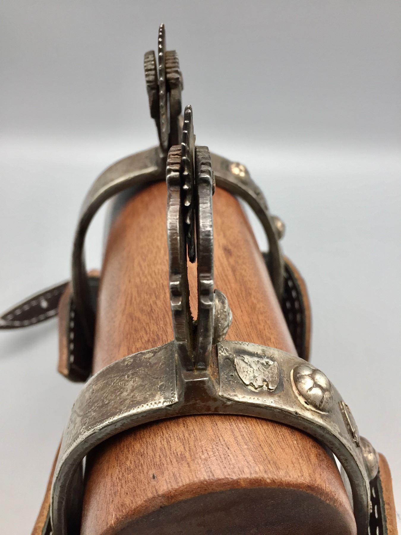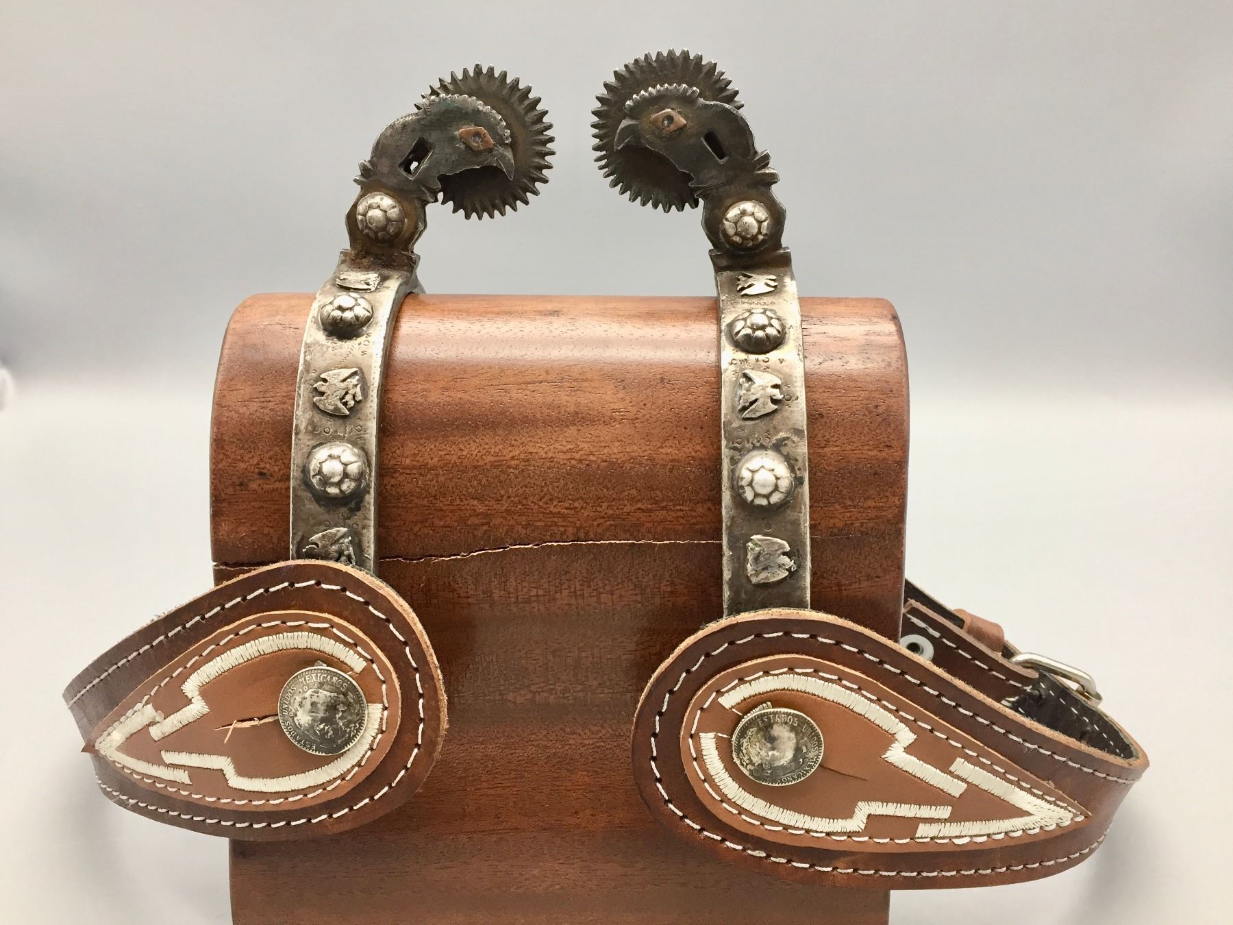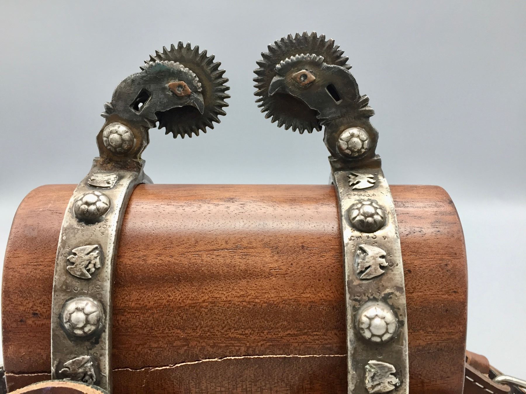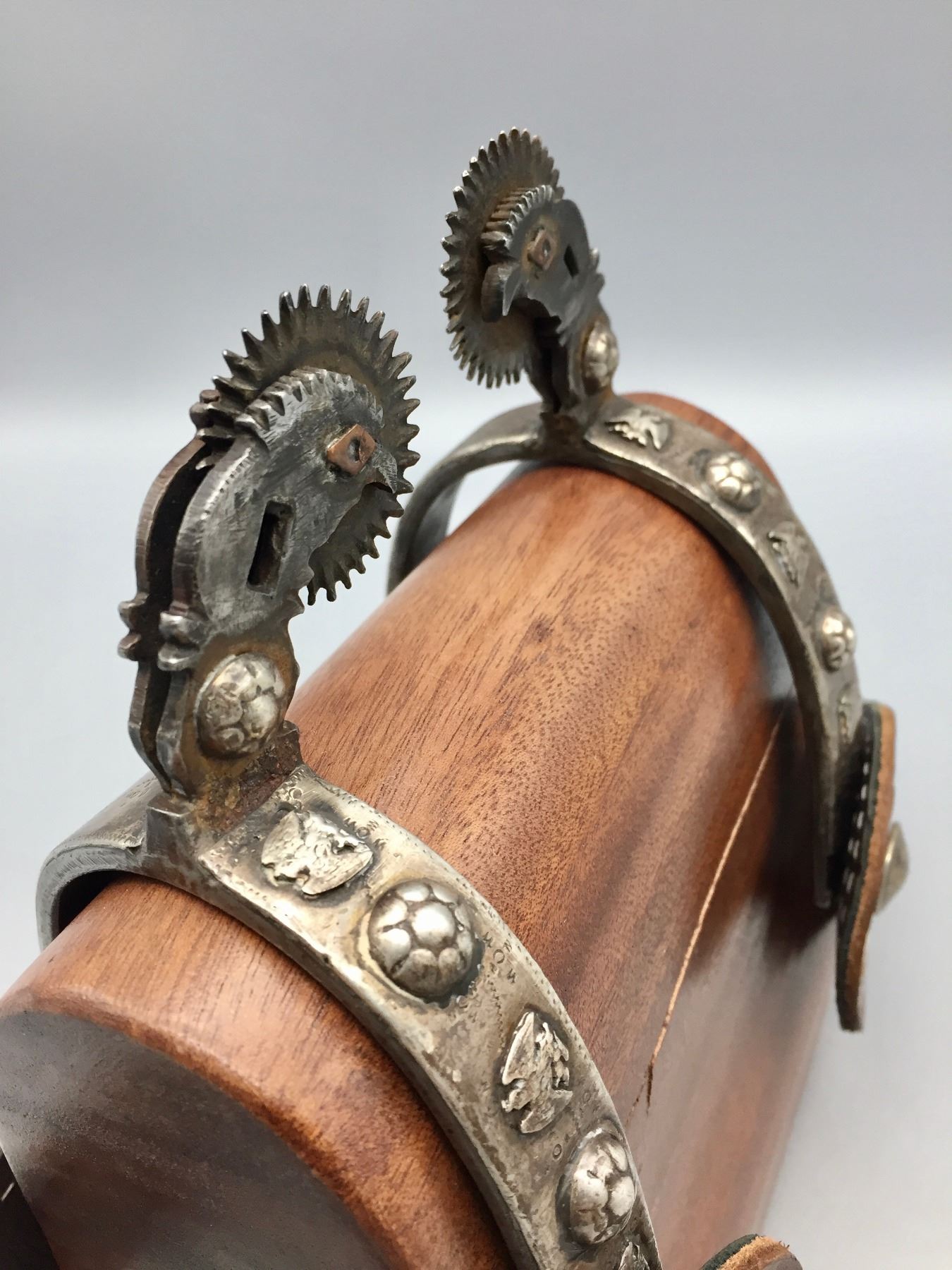 Description: Offered for your bidding pleasure is this pair of fancy, hand forged, Mexican spurs featuring nice designs and great leather spur straps. Maker: Unknown. Approx. Age: Vintage. Size: Heel measures 3-1/8”. Shank measures 2”. Condition: Good for their age, normal wear expected. Please look closely at the pictures - they are an important part of our description. Shipping: There will be a $5 handling / packaging fee for shipping this lot. The actual cost of postage will be added on top of that.
