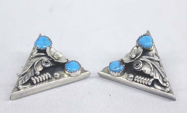 Navajo Sterling Silver Turquoise Collar Tips, measures approx. 1 3/8''L x 1 1/4''W. & weighs 15gr
