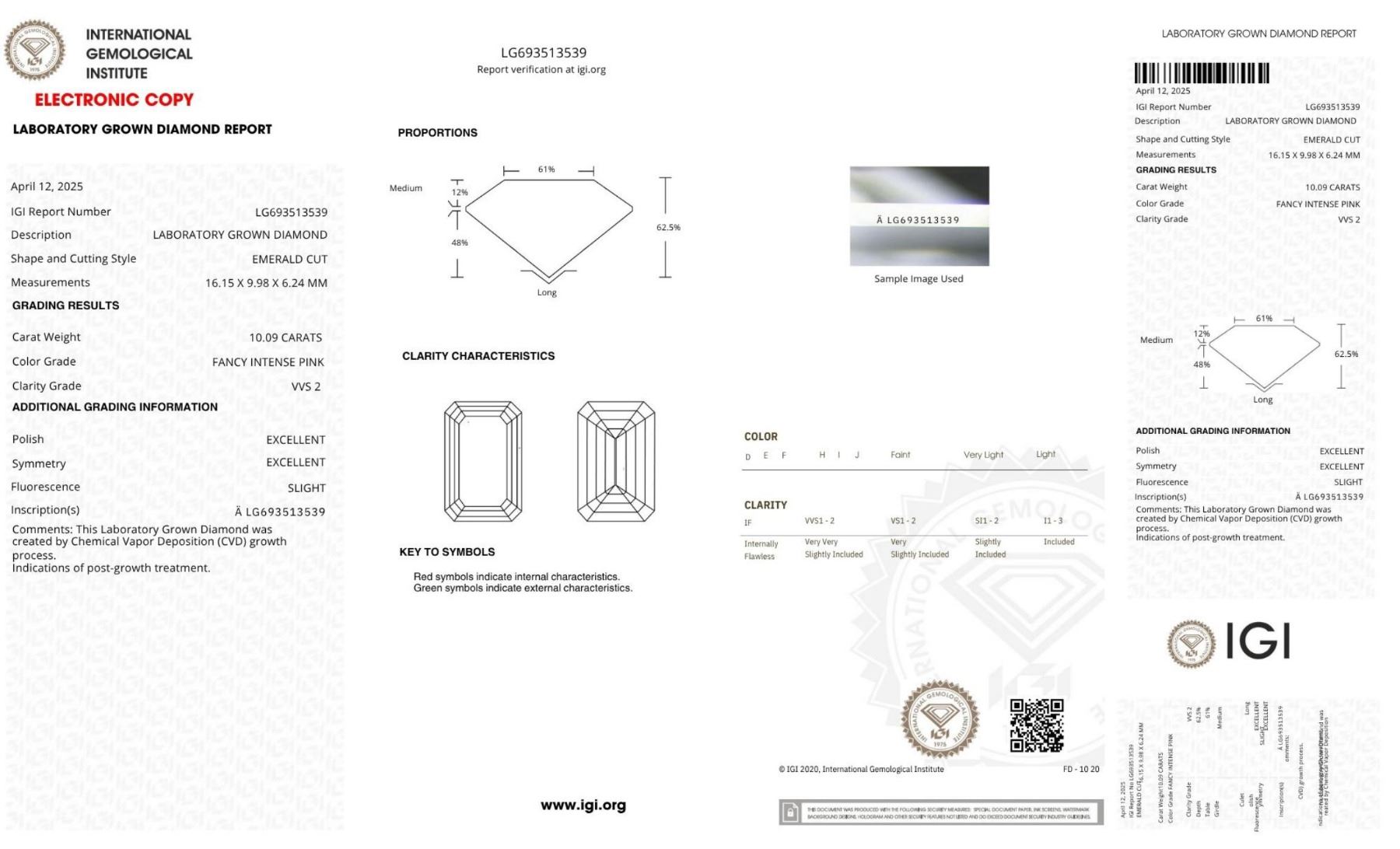 Fancy Octagon Pink Diamond 10.07 Cts - VS Clarity; IGI lab ( All Our Diamonds are Guarnteed authentic Lab Grown Diamonds) (Stock Ref---FD3012)