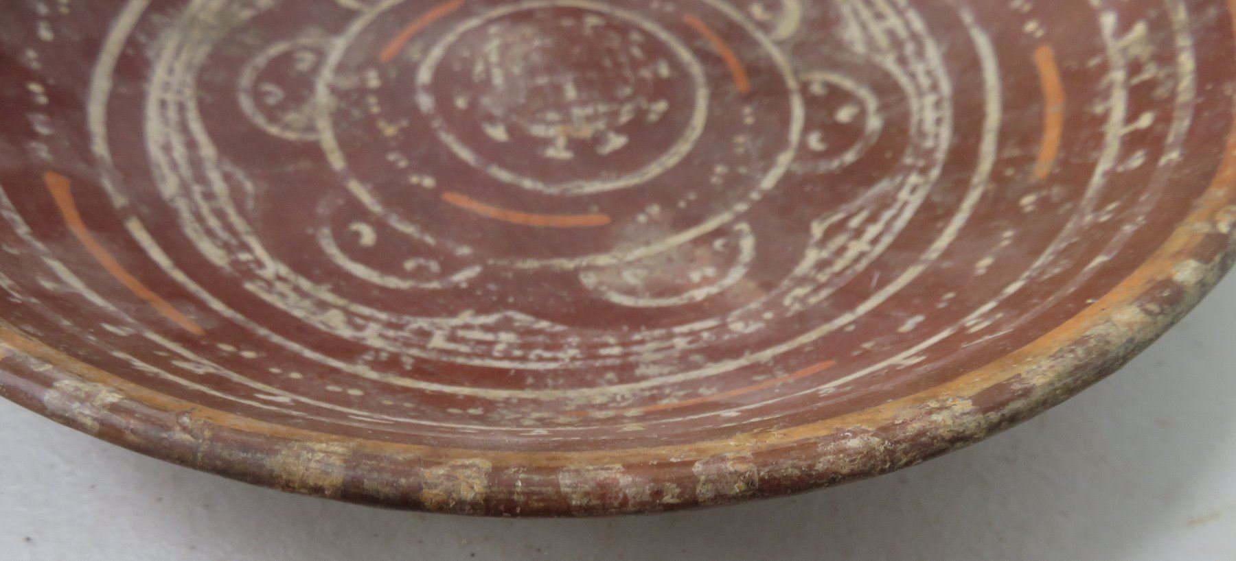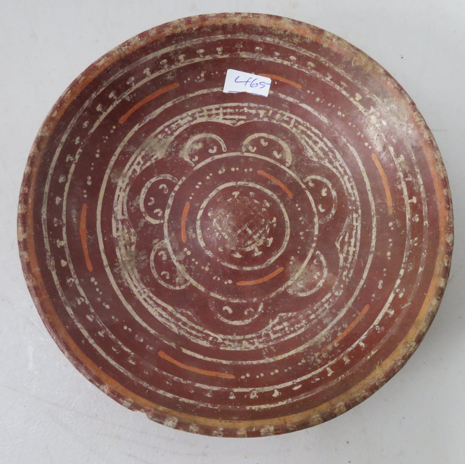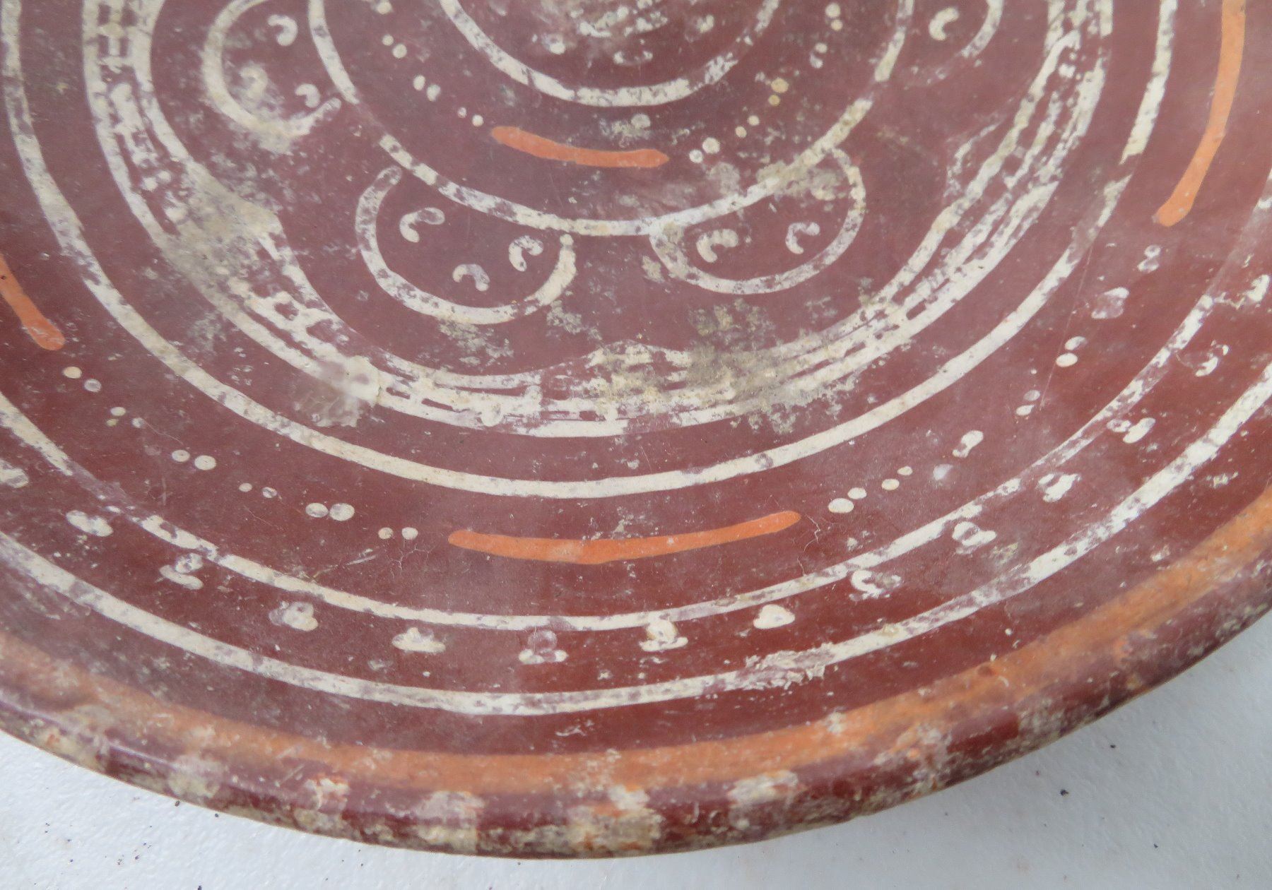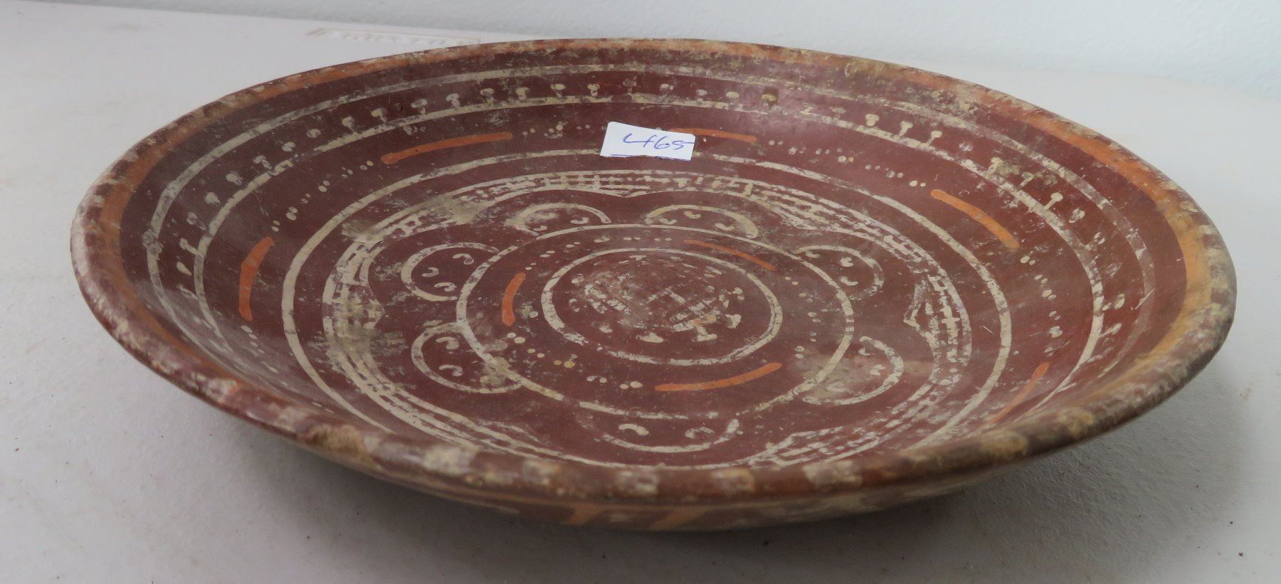 Fancy Painted Plate, pre-Columbian item. Made of clay and paint, the item measures 8" x 2". Nayarit, Mexico. Condition: Good, see images. Shipping: $25.00 w/insurance and signature, due to weight and value.