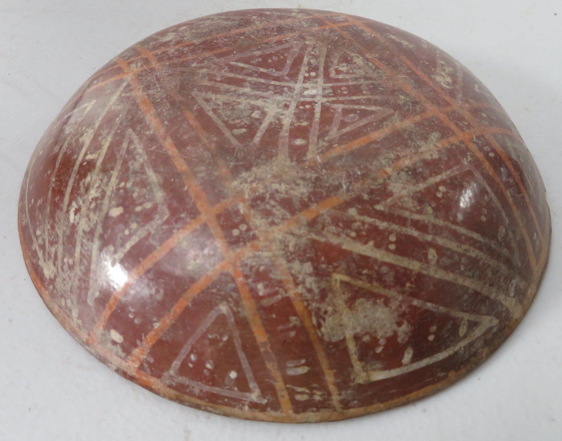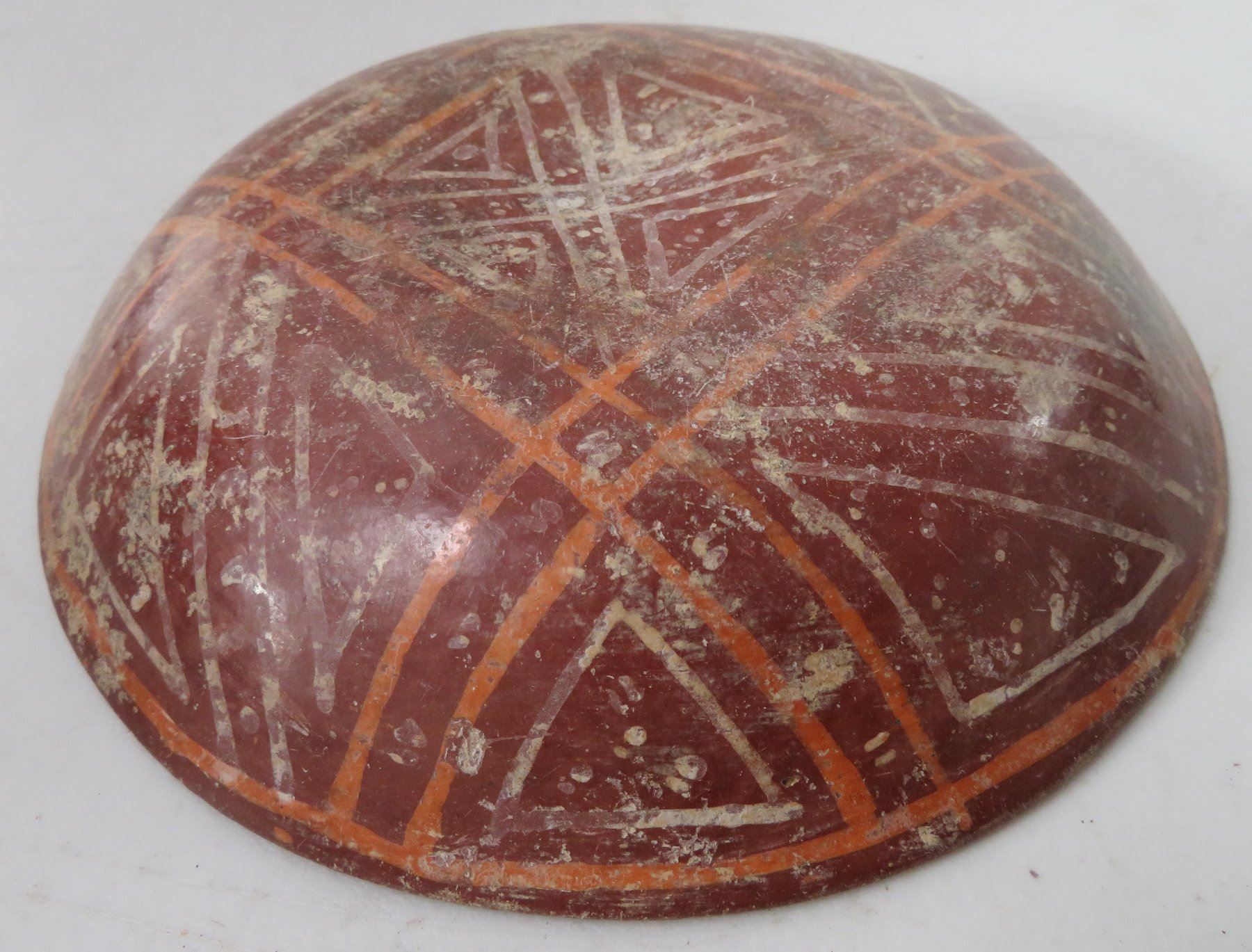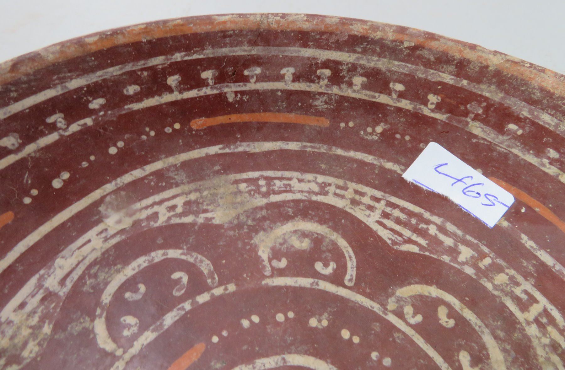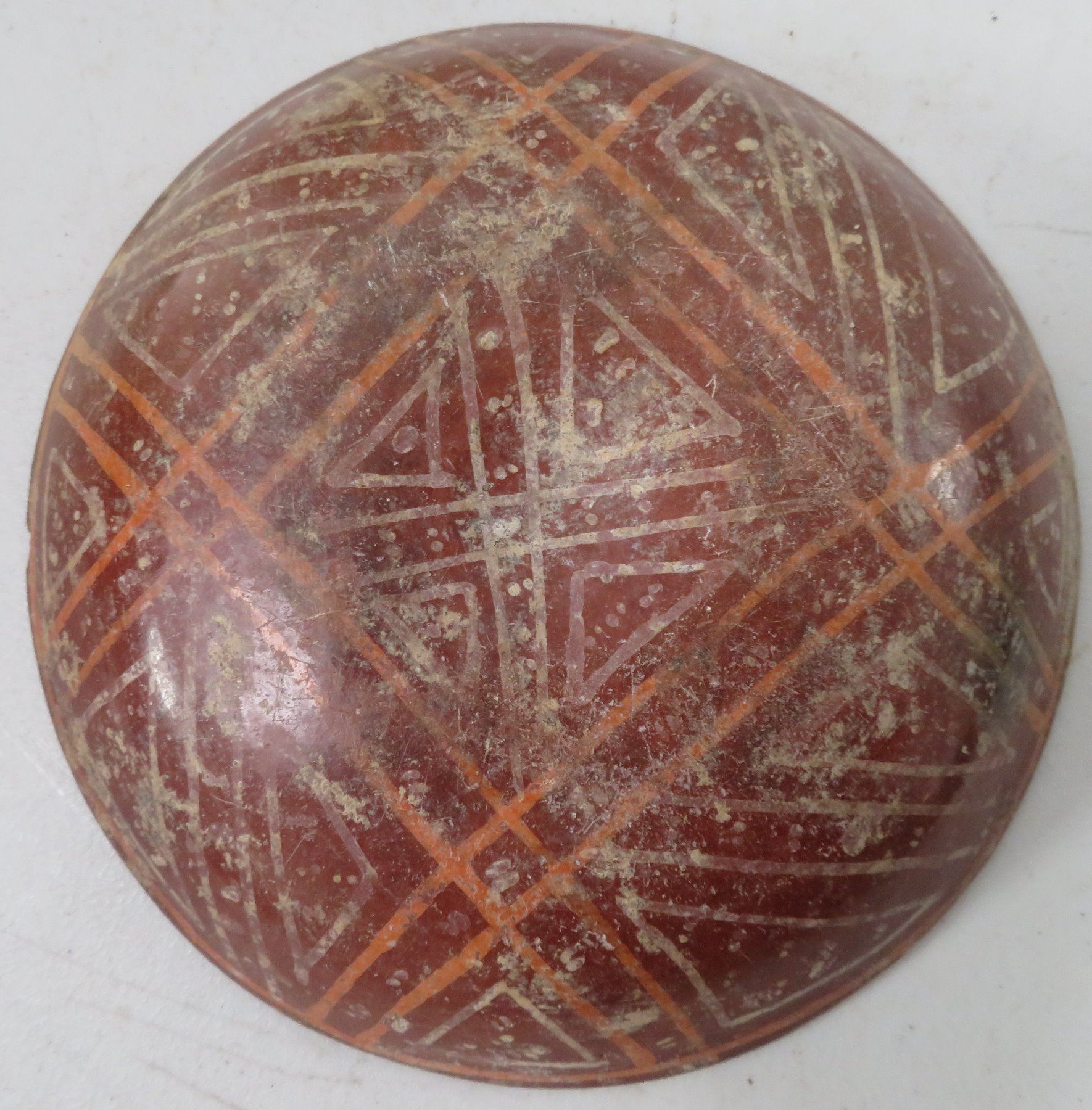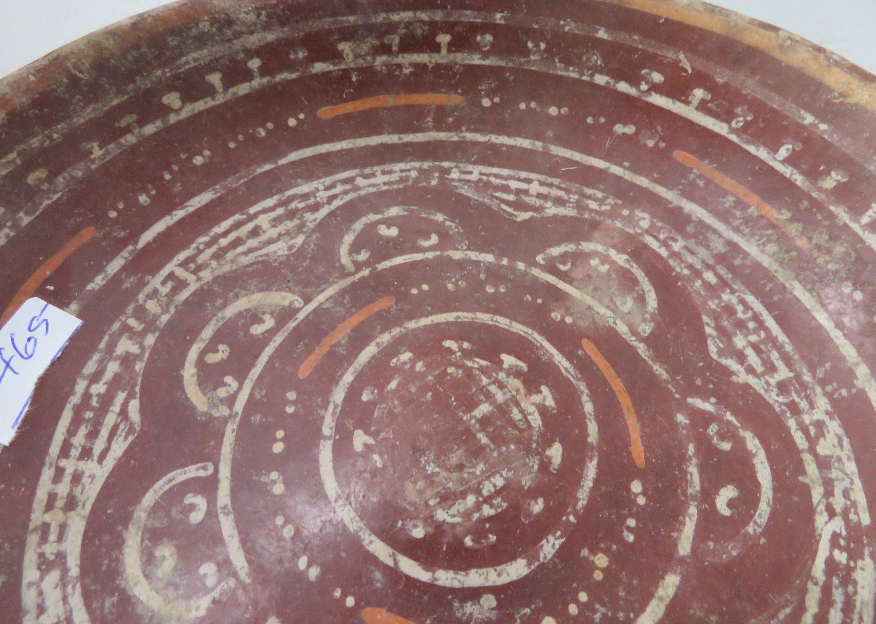 Fancy Painted Plate, pre-Columbian item. Made of clay and paint, the item measures 8" x 2". Nayarit, Mexico. Condition: Good, see images. Shipping: $25.00 w/insurance and signature, due to weight and value.