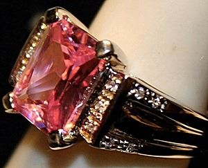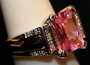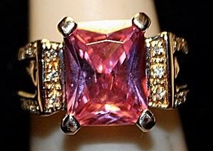 Fancy Pink Lab Sapphire with Diamonds SS Ring. (515L) Gemstones twt approx. 7cts. Sterling Silver.