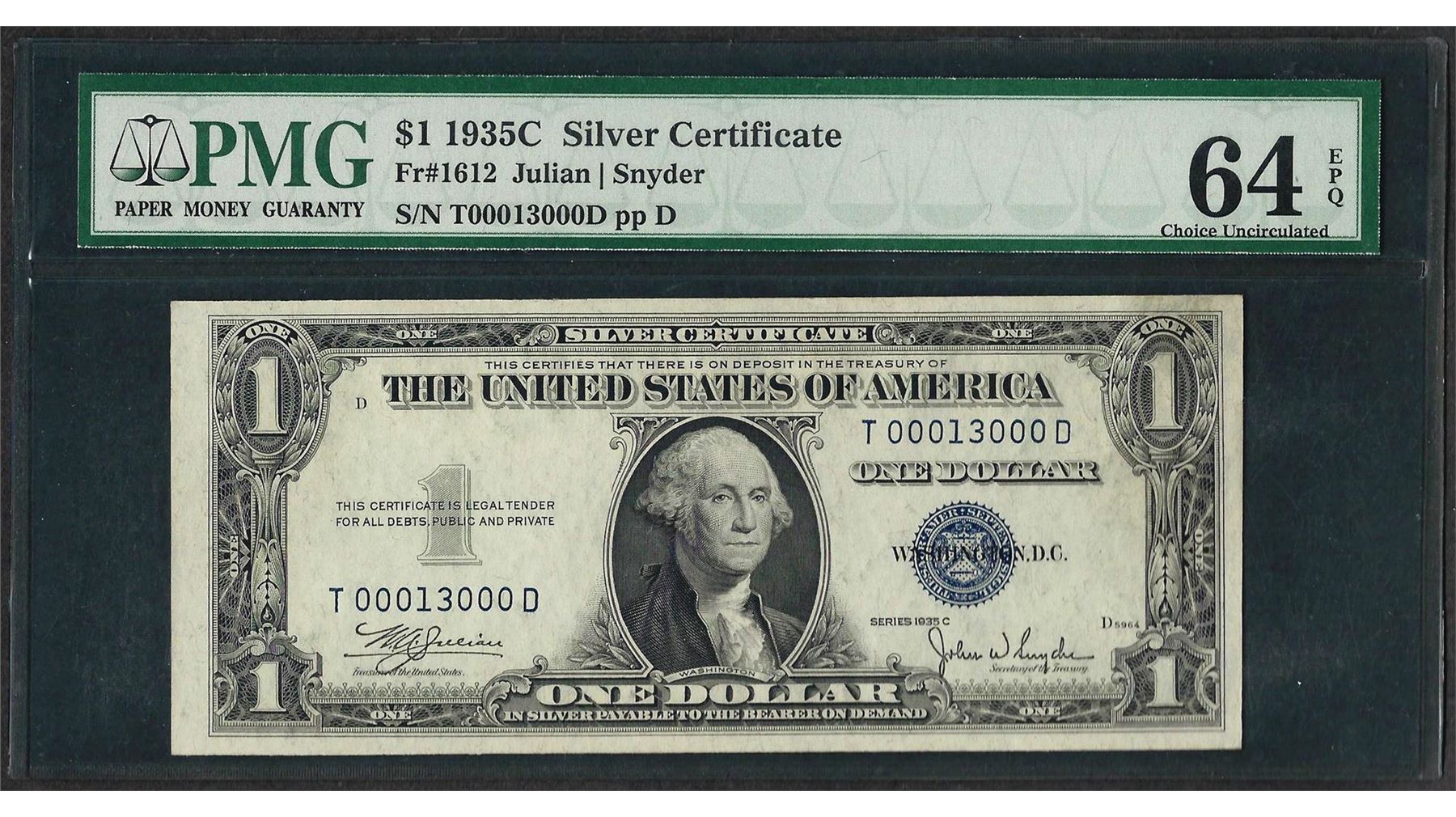 Fancy Serial Number 1935C $1 Silver Certificate Note PMG Choice Uncirculated 64E