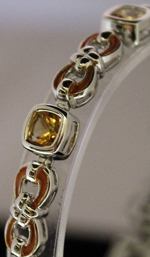 Fancy Sterling Silver Lab Golden Sapphire Bracelet. Twt approx 21 cts.