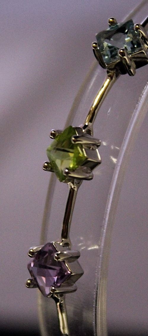 Sterling Silver Lab Multi Gem Stones Bracelet. Topaz, Peridots, Amethyst Twt approx 20 cts.
