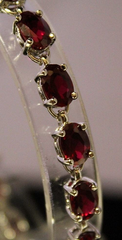 Fancy Sterling Silver Lab Ruby Bracelet. Twt approx 20 cts.