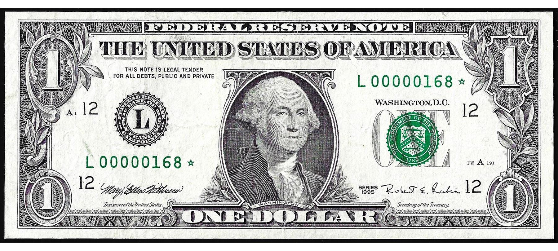 One Fancy Three Digit Serial Number 1995 $1 Federal Reserve Star Note.