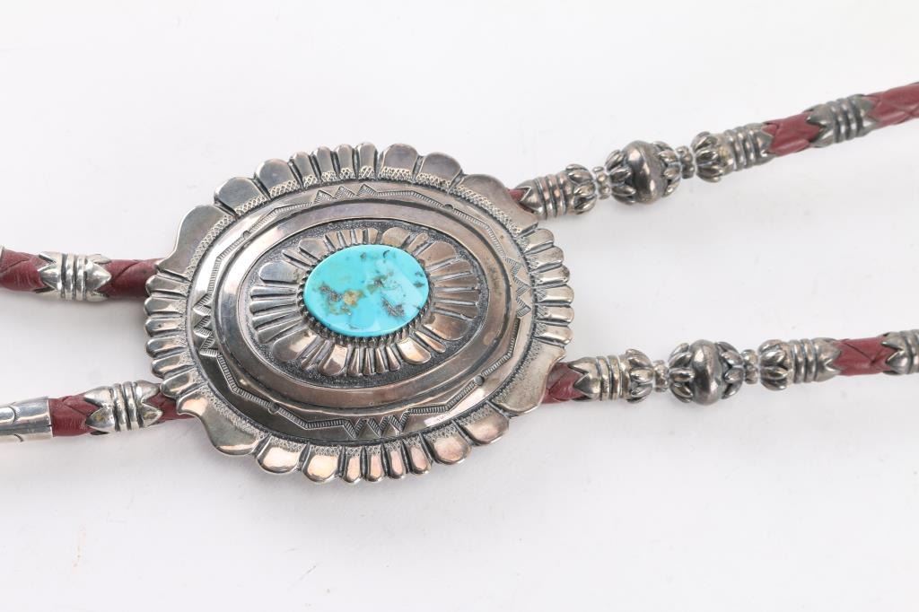 With Single Turquoise Stone Set In Sterling Silver Maker Marked.