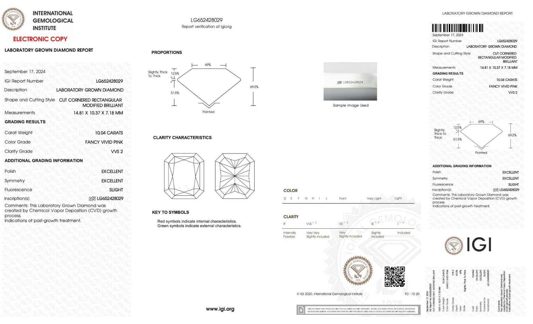 Fancy Vivid Pink Diamond 10.04 Cts - VVS Clarity; IGI lab ----Laser Inscription: IGI Number Laser Inscription on Girdle( All Our Diamonds are Guarnteed authentic Lab Grown Diamonds) (Stock Ref---FD620-PC)