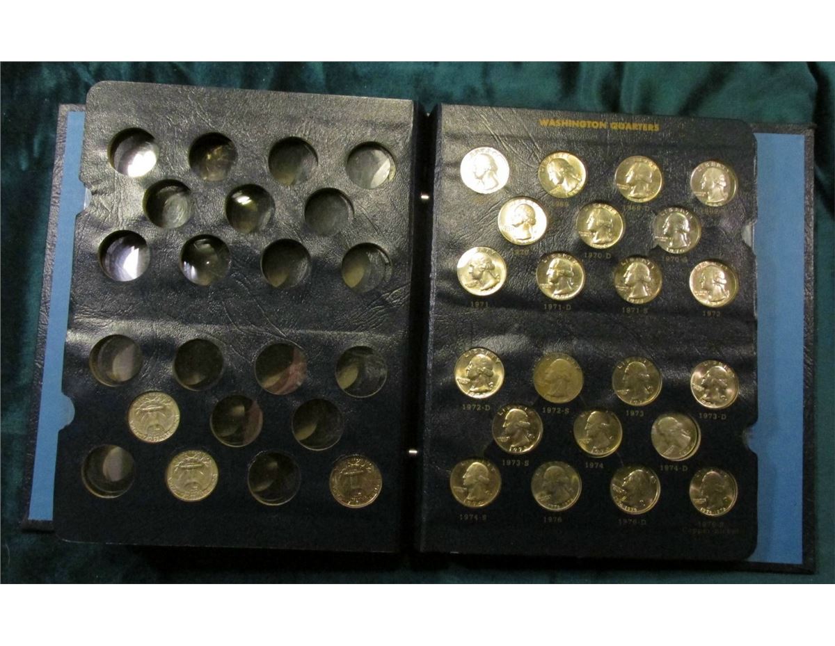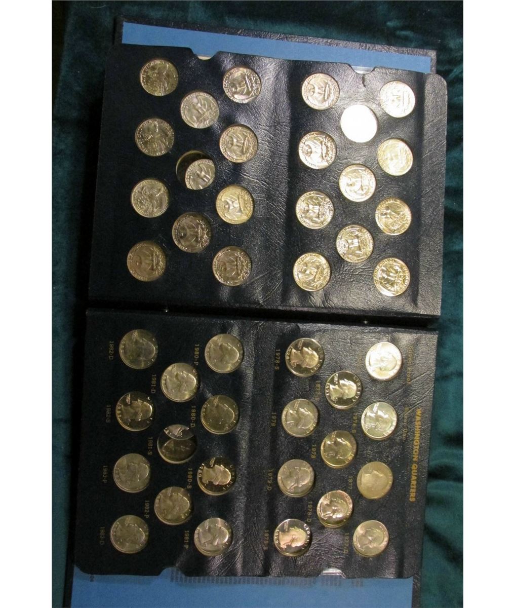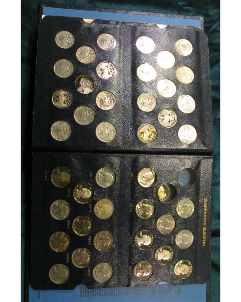 Fancy Whitman Classic Album with a Partial Set of 1965-1990 Washington Quarters. Includes lots of Proofs. (68 pcs.) A couple are Silver.