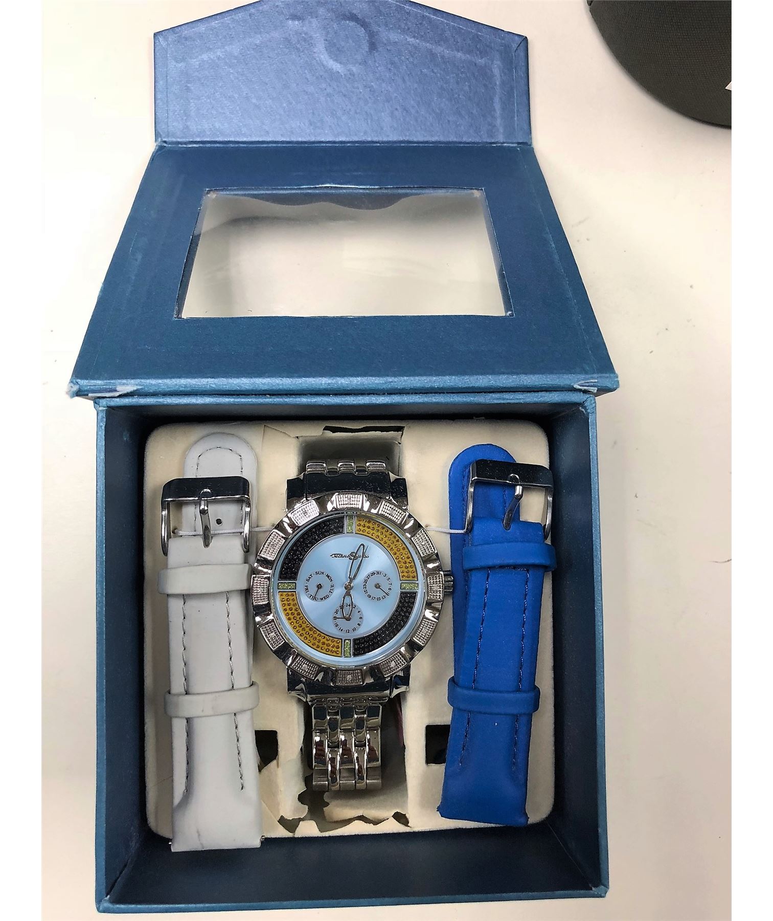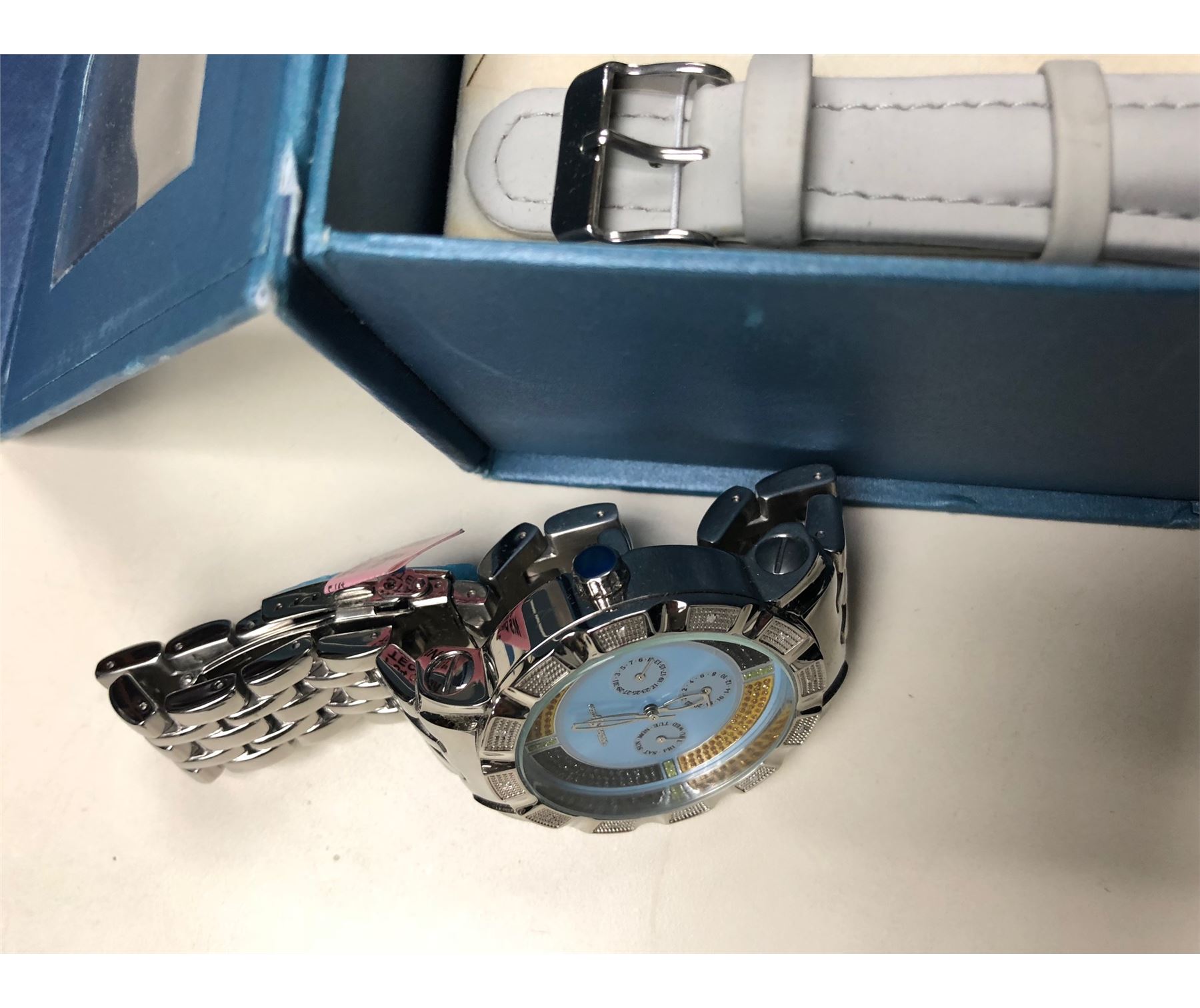 2 All items are sold AS IS, WHERE IS, WITH ALL FAULTS, ALL SALES ARE FINAL. NO REFUNDS AND NO EXCHANGES ARE ACCEPTED. THE COMPANY, AND ANY CONSIGNOR AS APPLICABLE, DISCLAIM ANY AND ALL WARRANTIES, EXPRESSED OR IMPLIED, INCLUDING BUT NOT LIMITED TO THE IMPLIED WARRANTY OF MERCHANTABILITY OR FITNESS FOR ANY PARTICULAR PURPOSE. NO WARRANTIES ARE MADE THAT ANY OF THE MERCHANDISE COMPLIES WITH ANY APPLICABLE GOVERNMENTAL RULES, REGULATIONS OR ORDINANCES OF ANY KIND OR NATURE WHATSOEVER. All items are available for inquiries prior to bidding. Written and oral descriptions are the opinions of this Company and should in no way be construed as a guarantee of any kind as to authenticity, age, condition, material or any other feature of items being sold. The Company believes that to the best of its knowledge information presented in any auction has come from reliable sources. However, such information is presented solely for the convenience of the prospective purchasers. The Company attempts to catalog every lot correctly and will attempt to point out any defects but will not be responsible or liable for the correctness of the catalog or other descriptions of the lot. It is the responsibility of the prospective bidders to examine all items in which they have an interest. By placing a bid, in any capacity, the bidder signifies that he/she has examined the items as fully as can be done to his/her satisfaction and have asked questions and received answers from the Company that are deemed adequate. If the bidder requires absolute certainty in all areas of authenticity, and the results of the evaluation leave uncertainly in the bidder?s mind, do not bid on the lot in question. The Company is not affiliated with any government entity and not all of the items sold were seized. Items sold by us are sourced from multiple channels and sources and there are no assurances that any of the items being sold have been seized. The Company is not authorized dealers of Rolex, Cartier or other watch brands that are sold at auction. We carry mostly pre-owned watches from secondary markets in exceptionally excellent condition. We guarantee you that the timepieces we sell are all authentic, unless otherwise stated where there are custom diamond parts including diamond bezels, diamond dials and/or diamond bands. We do not sell replicas of any kind. Diamonds used in the custom parts of watches are of top quality. An appraisal certificate is provided for every fine timepiece or jewelry purchased. Valuation may be based between actual purchase amount and its retail list price. In some cases, the item purchased may include its Original Warranty Certificate in the case of watches and Original Laboratory Certificate in the case of diamonds. Diamond or other precious or semi -precious stone jewelry is generally appraised by independent third parties such as GIA International or other similar associations or organizations. The appraisals are not intended as any warranties or representations of fact by this Company.