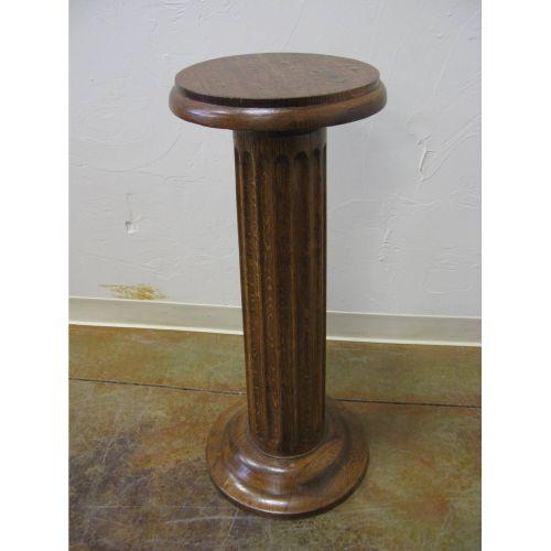 Fancy oak plant stand round stand looks like it has been refinished, SOME BUBBLING OF VENEER ON THE TOP. 34 3/4" tall x 13 1/2" Wide at the top x 15 1/4" wide at the base THANKS DANIEL 10/09/08