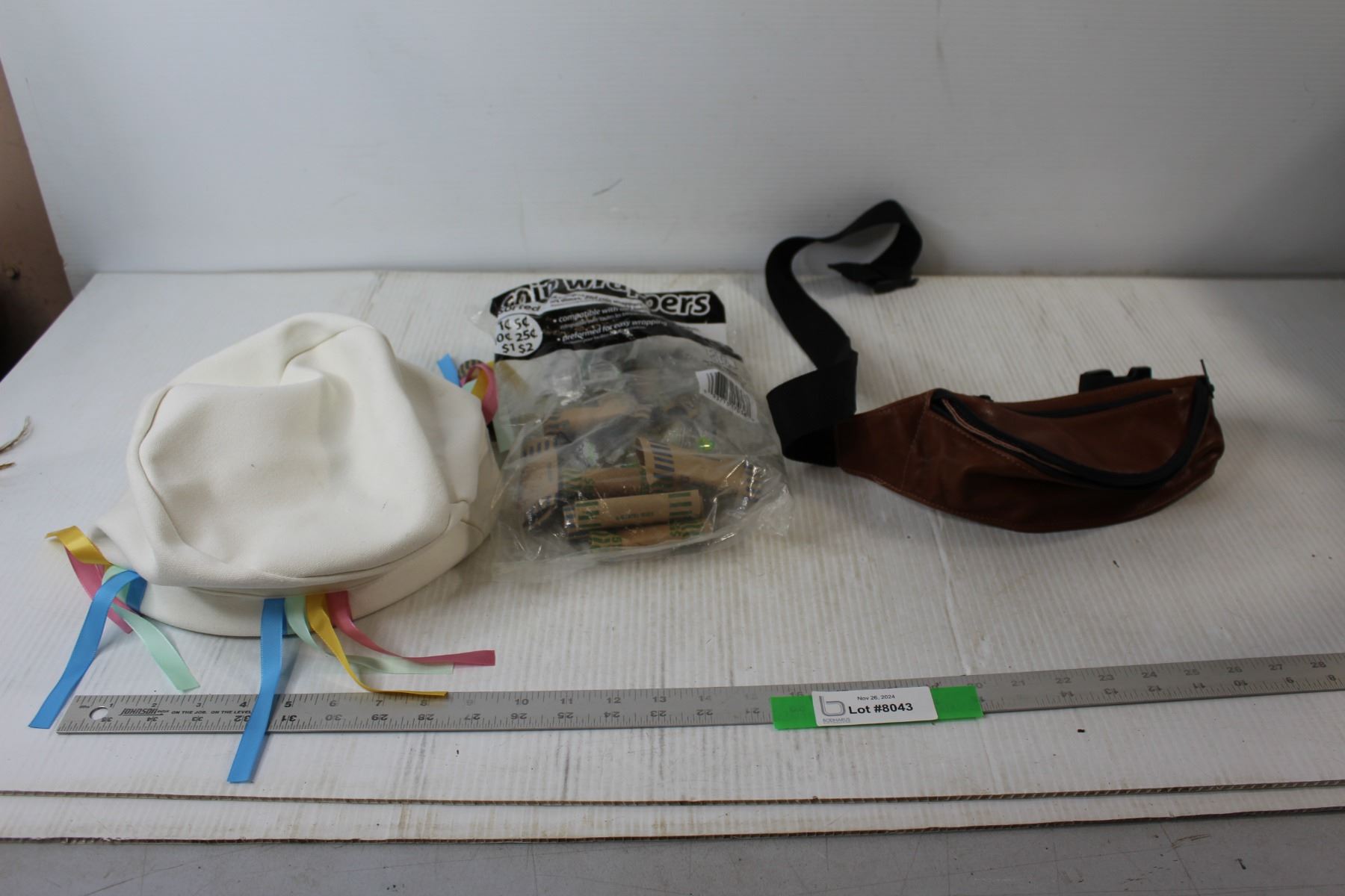 Fanny Pack With Assorted Coins, Coin Rolls, Hat