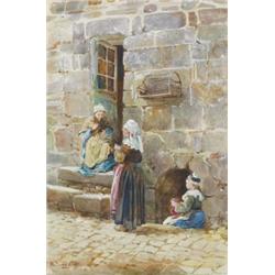 Fanny Wilmot Currey WCSI (1848-1917) WOMEN SEWING, BRITTANY signed and dated [1880] lower left watercolour over pencil heightened with white 27 by 18cm., 10.5 by 7in. Exhibited: ‘The French Influence’, Gorry Gallery, Dublin, 5-15 May 2004, catalogue no. 50 (illustrated)