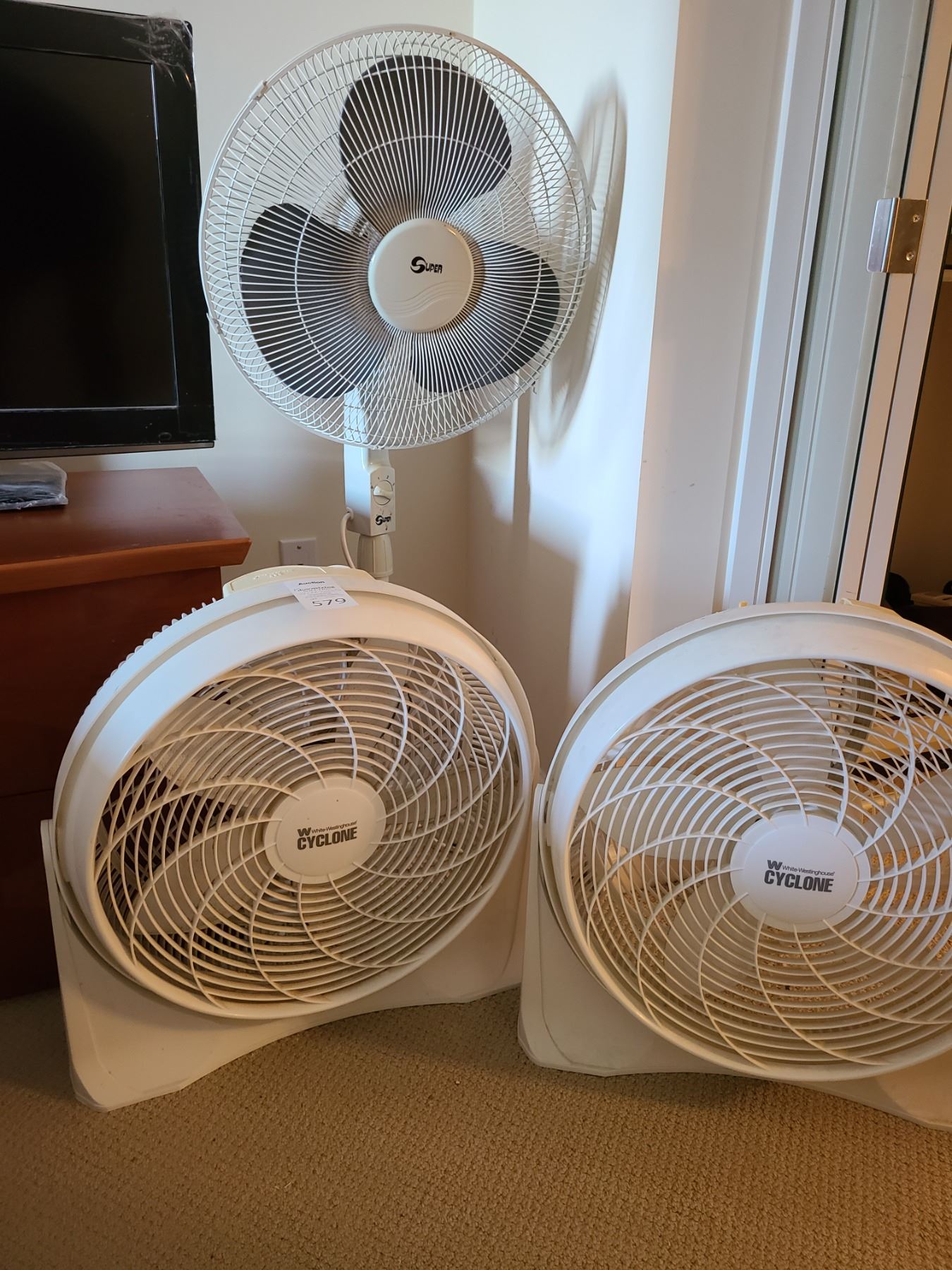 Super fan 23 inch telescopic fan, 2 X Cyclone Fans 22 in untested pickup at 9 am