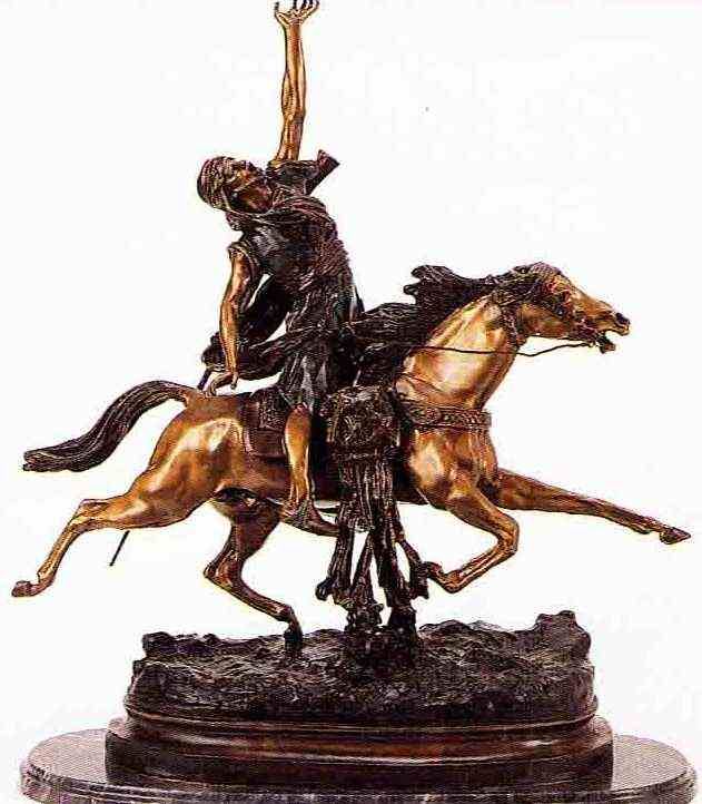 "Fantastic Arab" Bronze Sculpture - After Rancoulet - Beautiful Color Patina - Mounted On A Fine Italian Marble Base - Beautifully Detailed - Signed - Mint Condition - 32"H X 28"W - Lost Wax Cast Bronze