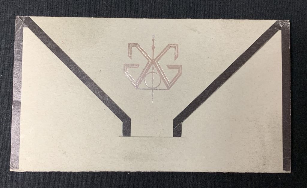 Original Grindelwald rally invite and envelope used in the J. K. Rowling written fantasy film "Fantastic Beasts: The Crimes of Grindelwald" (2018), The second installment of the "Fantastic Beasts" series featuring the adventures of Magizoologist Newt Scamander. The film features an ensemble cast that includes Eddie Redmayne, Katherine Waterston, Dan Fogler, Alison Sudol, Ezra Miller, Zoë Kravitz, Callum Turner, Claudia Kim, William Nadylam, Kevin Guthrie, Jude Law, and Johnny Depp. The plot follows Newt Scamander and Albus Dumbledore as they attempt to take down the dark wizard Gellert Grindelwald, while facing new threats in a more divided wizarding world.