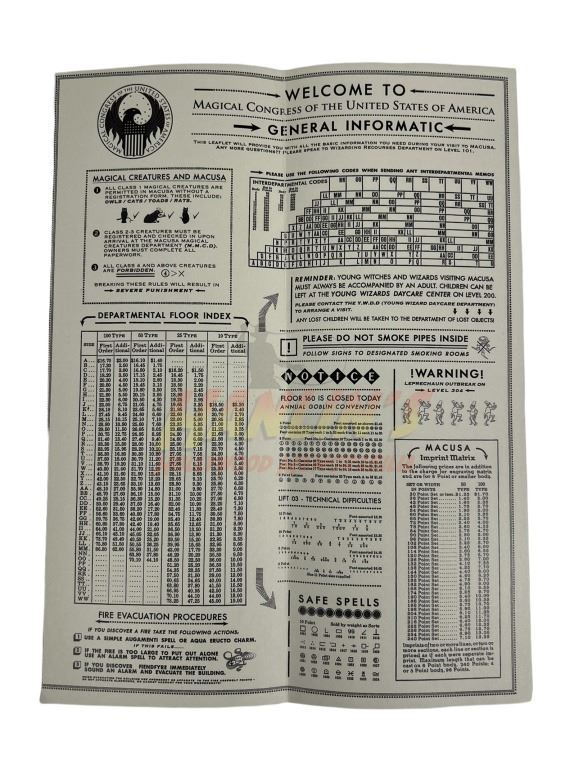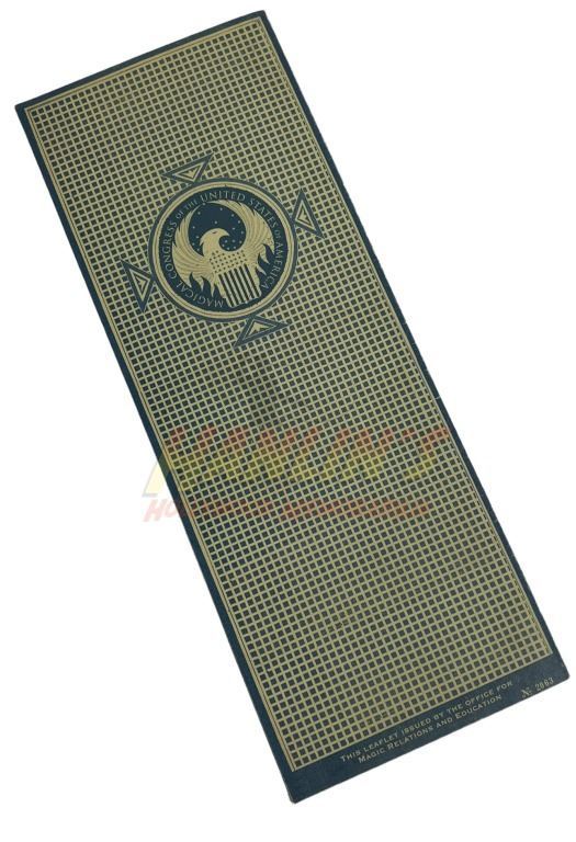Original Magical Congress of the USA general informatic leaflet from the fantasy film 'Fantastic Beasts and Where to Find Them' (2016), the spin-off and prequel to the Harry Potter film series, the adventures of writer Newt Scamander in New York's secret community of witches and wizards seventy years before Harry Potter reads his book in school.