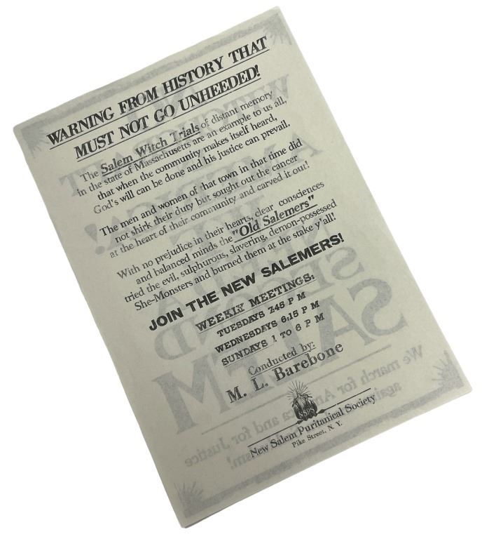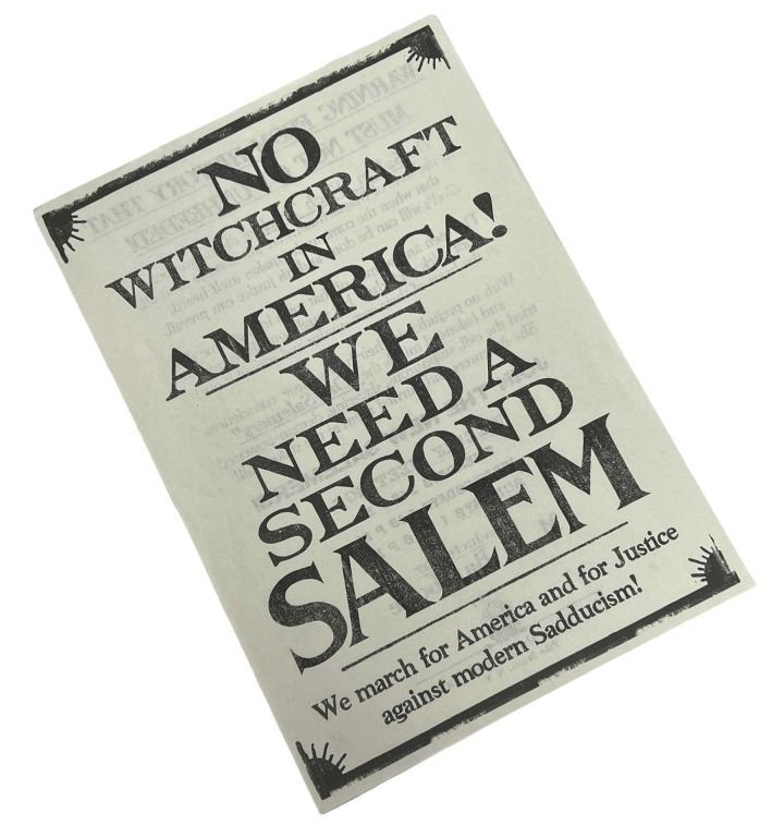 Original Salem! No Witchcraft Flyer from the fantasy film 'Fantastic Beasts and Where to Find Them' (2016), the spin-off and prequel to the Harry Potter film series, the adventures of writer Newt Scamander in New York's secret community of witches and wizards seventy years before Harry Potter reads his book in school. The film features an ensemble cast that includes Eddie Redmayne, Katherine Waterston, Dan Fogler, Alison Sudol, Ezra Miller, Samantha Morton, Jon Voight, Carmen Ejogo, and Colin Farrell.