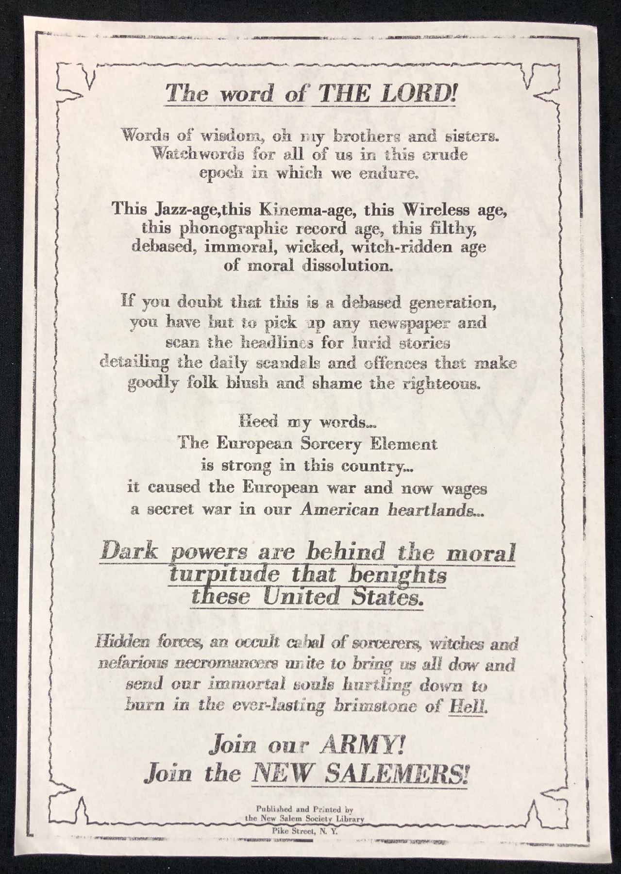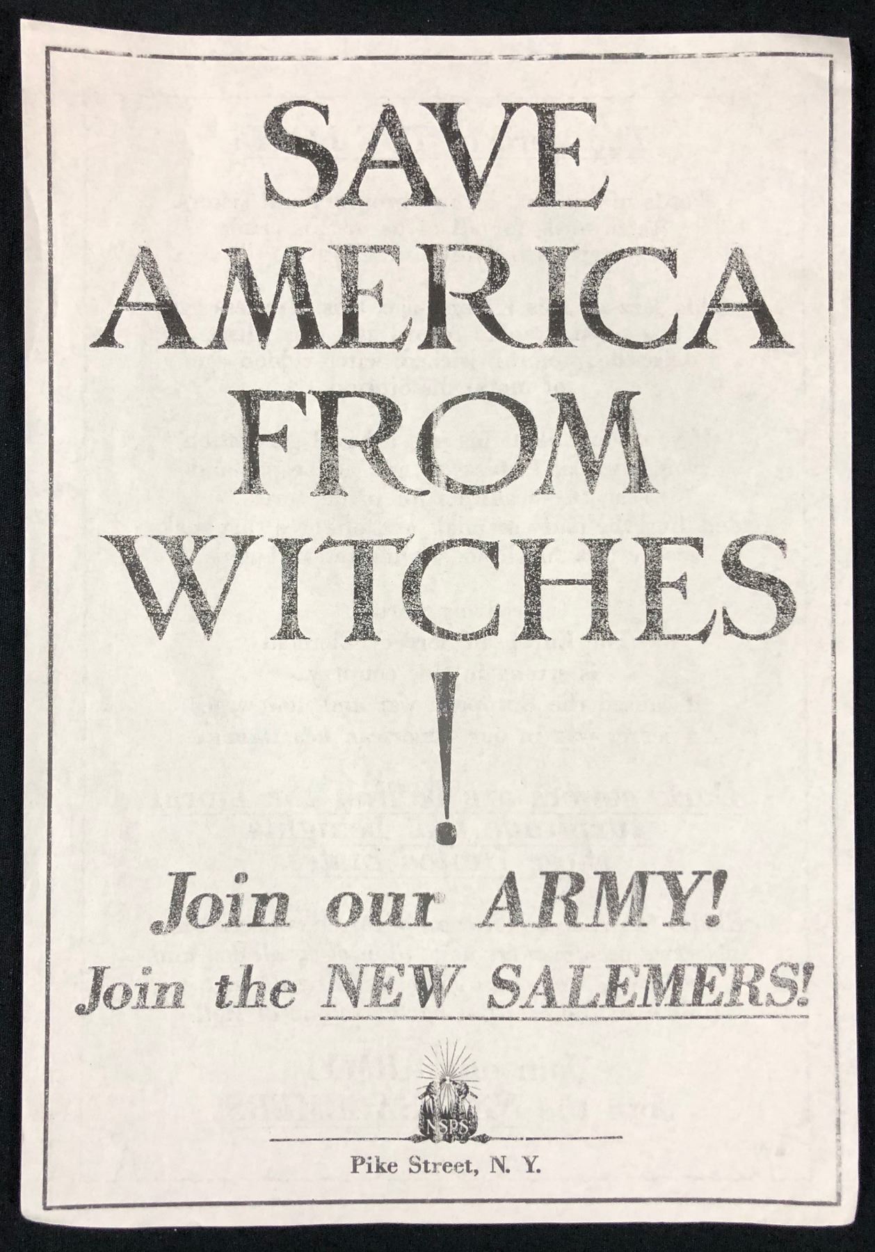 Original "Save America From Witches!" small Flyer from the fantasy film "Fantastic Beasts and Where to Find Them" (2016), the spin-off and prequel to the Harry Potter film series, the adventures of writer Newt Scamander in New York's secret community of witches and wizards seventy years before Harry Potter reads his book in school. The film features an ensemble cast that includes Eddie Redmayne, Katherine Waterston, Dan Fogler, Alison Sudol, Ezra Miller, Samantha Morton, Jon Voight, Carmen Ejogo, and Colin Farrell.