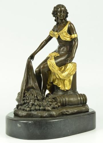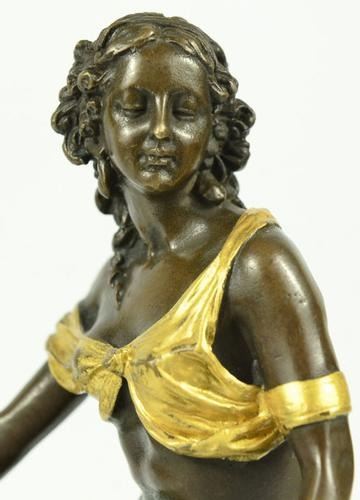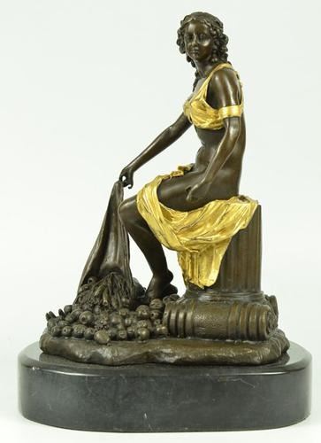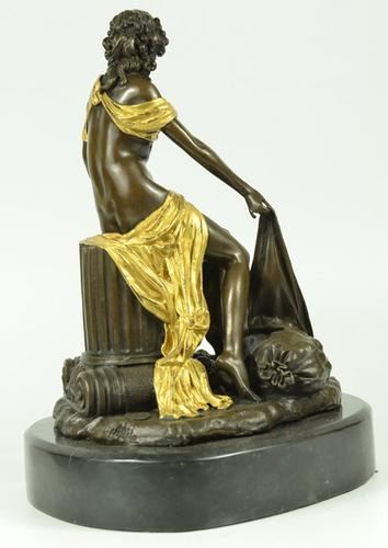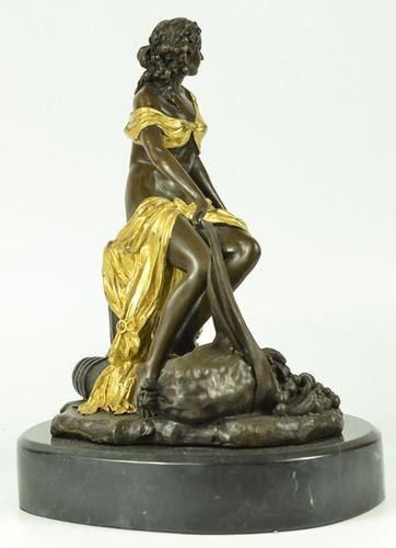 Bronze and marble sculpture. Beautiful gold and brown patina. The quality of this refined art is rarely found in re-casted bronzes. This sculpture was cast using the lost wax method and is mounted on a gorgeous heavy marble base with a delightful bronze trim around the base. Bronze dimensions with marble base: Height 12 X Width 9 inches. Weight: 12 LBS. Inventory: K4694DS370B