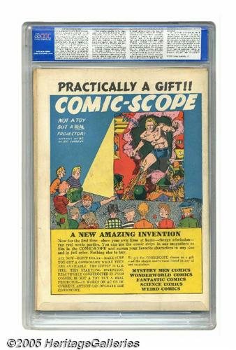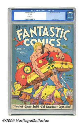 <B>Fantastic Comics #5 (Fox, 1940) CGC FN 6.0 Off-white pages.</B></I> A Lou Fine cover is the eye-catcher here, plus we'll note that no copy of this issue has been graded higher by CGC to date! Overstreet 2005 FN 6.0 value = $555. CGC census 6/05: 2 in 6.0, none higher.