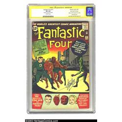 Fantastic Four #11 Stan Lee File Copy (Marvel, 1963) CGC VG 4.0 Off-white pages. Signature Series. Making his comic book debut in this issue is none other than the Impossible Man himself. Another highlight of this book is the revelation of never before known facts about the Fantastic Four's past and present. Overstreet 2002 GD 2.0 value = $56; FN 6.0 value = $169. Important notice: We expect to be auctioning lots at the rate of 200-250 per hour. Sometimes eBay Premier live bid software cannot keep up with that pace, so we strongly recommend that you place a realistic proxy bid now as insurance to avoid disappointment. Also please note that all Heritage/CAA lots purchased through eBay Premier carry a 20% Buyer's Premium. Please make sure you read the Terms and Conditions.