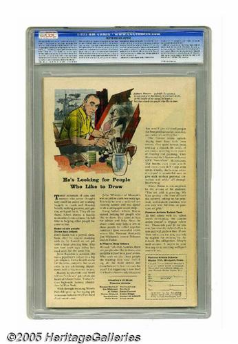 50. Auctioneer offers no opinion as to the validity of a grade assigned by any third-party grading service. Since we cannot examine C.G.A. encapsulated notes or Comics Guaranty Corporation (CGC) encapsulated comics, they are sold "as is" without our grading opinion, and may not be returned for any reason. Auctioneer shall not be liable for any patent or latent defect or controversy pertaining to or arising from any encapsulated collectible. In any such instance, purchaser's remedy, if any, shall be solely against the certification service certifying the collectible.