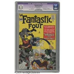 <B>Fantastic Four #2 (Marvel, 1962) CGC Apparent VF+ 8.5 Slight (P) Off-white pages.</B></I> The Fantastic Four made their second appearance in this issue -- they were so new, they didn't even have costumes yet! This comic also saw the first appearance of the Skrulls, who would play quite a significant role in the Marvel Universe in years to come. The cover and art are by Jack Kirby. CGC notes, "Restoration includes: small amount of color touch on cover. tear seal to cover, staples cleaned." Overstreet 2004 GD 2.0 value = $298; VG 4.0 value = $604; FN 6.0 value = $906; VF 8.0 value = $2,533; VF/NM 9.0 value = $4,391; NM- 9.2 value = $6,250.