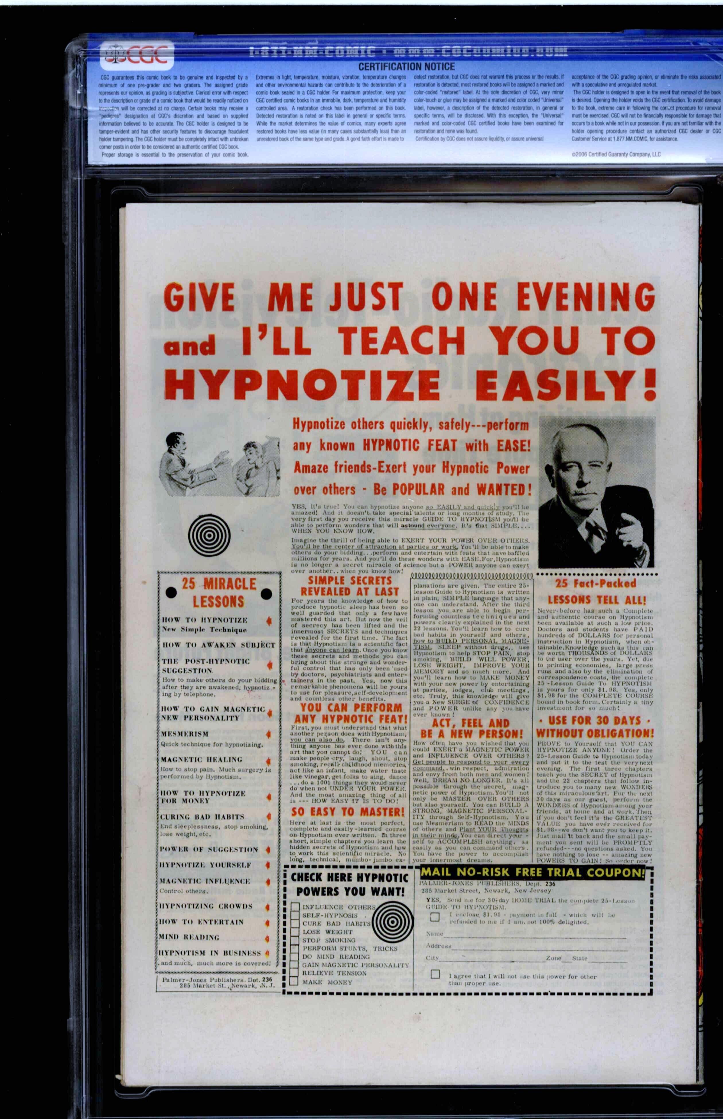 The Auctioneer has reserved the right to reject any and all bids, and to bid at the auction. Auctioneers Auctions are not on approval. Auctioneer does not allow certified material to be returned because of possible differences of opinion with respect to the grade offered by any third party organization, dealer, or service. Absolutely no guarantee of grade is offered for un-certified property sold and subsequently submitted to a third-party grading service. There will be no exceptions to this policy. Under extremely limited circumstances, (e.g. gross cataloging error) a purchaser, who did not bid from the floor, may request Auctioneer to evaluate voiding a sale; such request must be made in writing detailing the alleged gross error, and submission of the lot to the Auctioneer must be pre-approved by the Auctioneer. Bidder must notify Auctioneer in writing of such request within three (3) days of the non-floor bidder receipt of the lot. Any lot that is to be evaluated must be in our offices within 30 days after Auction. Grading does not qualify for this evaluation process nor do such complaints constitute a basis to challenge the authenticity of a lot. AFTER THAT 30-DAY PERIOD, NO LOTS MAY BE RETURNED FOR REASONS OTHER THAN AUTHENTICITY. Lots returned must be housed intact in the original holder. No lots purchased by floor Bidders may be returned (including those Bidders acting as agents for others). Late remittance for purchases may be considered just cause to revoke all return privileges. B: Auctions conducted solely on the Internet have a THREE (3) DAY RETURN POLICY: Lots paid for within seven days of the Auction closing are sold with a three (3) day return privilege. You may return lots under the following conditions: Within three days of receipt of the lot, you must first notify Auctioneer by contacting Client Service by phone (314-680-8599) or e-mail (moundcityauctions@gmail.com), and immediately mail the lot(s) fully insured to the attention of Returns, Mound City Auctions 1081 Teson Rd. Hazelwood, MO. 63042. Lots must be housed intact in their original holder and in their original condition. You are responsible for the insured, safe delivery of any lots. Auctioneer will not be responsible for lots returned in non-registered mail or lots returned without prior authorization per section B. A non-negotiable return fee of 5% of the purchase price ($10 per lot minimum) will be deducted from the refund for each returned lot or billed directly. Postage and handling fees are not refunded. After the three-day period (from receipt), no items may be returned for any reason. Late remittance for purchases revokes all Return-Restock privileges. C: Bidders who have inspected the lots prior to the auction will not be granted any return privileges. D: Comic books sold referencing a third-party grading service are sold “as is” without any express or implied warranty. Certain warranties may be available from the grading services and the Bidder is referred to them for further details: Certified Guaranty Company, LLC. (CGC), P.O. Box 4738, Sarasota, FL 34230. E: Bidders who intend to challenge authenticity or provenance of a lot must notify Auctioneer in writing within thirty (30) days of the Auctions conclusion. In the event Auctioneer cannot deliver the lot or subsequently it is established that the lot lacks title, provenance, authenticity, or other transfer or condition issue is claimed, Auctioneer's liability shall be limited to rescission of sale and refund of purchase price; in no case shall Auctioneer's maximum liability exceed the high bid on that lot, which bid shall be deemed for all purposes the value of the lot. After one year has elapsed, Auctioneer's maximum liability shall be limited to any commissions and fees Auctioneer earned on that lot. F: All comics are guaranteed genuine, but are not guaranteed as to grade, since grading is a matter of opinion, an art and not a science, and therefore the opinion rendered by the Auctioneer or any third party grading service may not agree with the opinion of others (including trained experts), and the same expert may not grade the same item with the same grade at two different times. G: Since we cannot examine encapsulated comics, they are sold “as is”without our grading opinion, and may not be returned for any reason. Auctioneer shall not be liable for any patent or latent defect or controversy pertaining to or arising from any encapsulated collectible. In any such instance, purchaser's remedy, if any, shall be solely against the service certifying the collectible. H: Due to changing grading standards over time, differing interpretations, and to possible mishandling of items by subsequent owners, Auctioneer reserves the right to grade items differently than shown on certificates from any grading service that accompany the items. Auctioneer also reserves the right to grade items differently than the grades shown in the prior catalog should such items be reconsigned to any future auction. I: Although consensus grading is employed by most grading services, it should be noted as aforesaid that grading is not an exact science. In fact, it is entirely possible that if a lot is broken out of a plastic holder and resubmitted to another grading service or even to the same service, the lot could come back with a different grade assigned. J: Certification does not guarantee protection against the normal risks associated with potentially volatile markets. The degree of liquidity for certified collectibles will vary according to general market conditions and the particular lot involved. For some lots there may be no active market at all at certain points in time."
