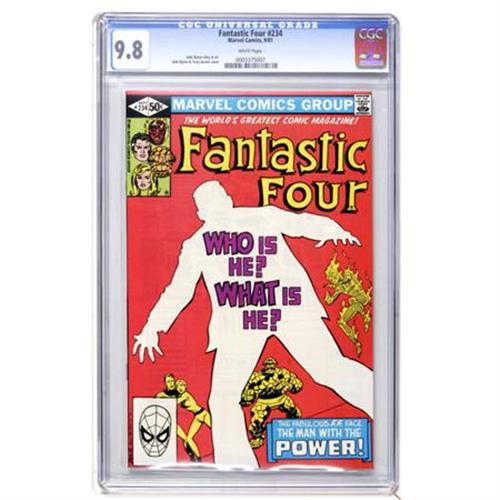 <B>Fantastic Four #234 (Marvel, 1981) CGC NM/MT 9.8 White pages.</B></I> John Byrne and Terry Austin cover. Byrne art. Overstreet 2007 NM- 9.2 value = $5. CGC census 8/07: 22 in 9.8, none higher.<BR><BR><b>Shipping:</b> Comics - Slabbed (certified) (<a target="_blank" href="http://www.heritageauctions.com/common/shipping.php">view shipping information</a>)