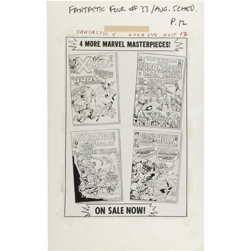 <B>Fantastic Four #33 - Marvel House Ad Production Piece (Marvel, 1964).</B></I> Face Front, True Believer! Mighty Marvel is on the march again with this house ad featuring a photostat layout of four Jack Kirby cover classics. This page has an overall size of 14" x 22.5", and this production piece is in Excellent condition. <BR><BR><b>Shipping:</b> Flat Material, Large (<a target="_blank" href="http://www.heritageauctions.com/common/shipping.php">view shipping information</a>)