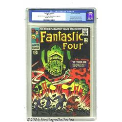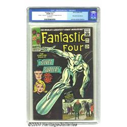 <B>Fantastic Four #48-50 Group (Marvel, 1966) Condition: Average FN/VF.</B></I> Though Marvel didn't coin the term, awestruck fans quickly dubbed these three issues "the Galactus trilogy," and the name stuck. We're offering the three issues together as a group lot: #48 (CGC VF 8.0, White pages), #49 (CGC VF- 7.5, Off-white to white pages), and #50 (CGC VG/FN 5.0, Off-white pages). If there were college courses called "Stan Lee 101" and "Intro to Jack Kirby art," these would be required reading. Planet-eating Galactus and his herald the Silver Surfer make their first appearances, and high drama ensues. Along with #1, these are <I>the</B></I> key books of the <B>FF</B></I> series. While it wasn't possible to authenticate the autographs, CGC notes that the signatures of "Jack Kirby," "Stan Lee," and "Joe Sinnott" appear on the first page of each book. When this lot comes up, make sure you're a bidder, not a Watcher! Overstreet 2004 value for group = $841. 3 Comic Books <BR><BR><B>Important notice:</B> Heritage usually auctions material at the rate of 200-250 lots per hour. On some occasions eBay Live bid software or the Internet may not be able to keep up with the pace of the auction. We recommend placing a realistic absentee bid now as insurance to avoid disappointment. Occasionally the auctioneer may eliminate or reject an eBay Live bid, and the auctioneer may also reopen a lot after the close of the eBay live bidding (usually because we missed an audience bid), and may reject your bid even if it shows you as the winning bidder. By bidding via eBay Live, you agree that Heritage may award the lot to another bidder at its sole discretion under the circumstances described above or any other reasonable circumstances. Since eBay bids are not shown to us until we open the lot on the floor, we treat those bids just like floor bids. In most cases the floor responds before the eBay bid is presented to us, due to Internet lag time, so for consistency we have made it a policy that floor bids are always considered first over tie eBay live bids. Also please note that all Heritage lots purchased through eBay Live carry a 20% Buyer's Premium. Please make sure you read the Terms and Conditions before you bid.