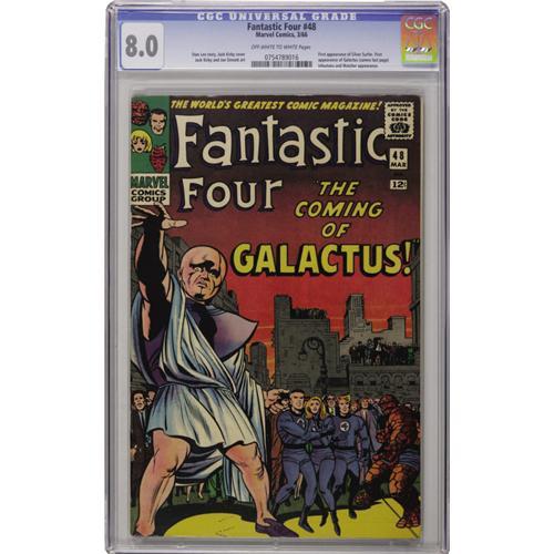 <B>Fantastic Four #48 (Marvel, 1966) CGC VF 8.0 Off-white to white pages.</B></I> The first appearance of the Silver Surfer heralds the first appearance of Galactus. The Inhumans and the Watcher also show up. The Jack Kirby cover and art are excellent on this copy from a single owner collection. Overstreet 2006 VF 8.0 value = $425. CGC census 9/06: 89 in 8.0, 321 higher. <I>From the Madison Monk Collection.</B></I><BR><BR><b>Shipping:</b> Slabbed Comic (<a target="_blank" href="http://www.heritageauctions.com/common/shipping.php">view shipping information</a>)