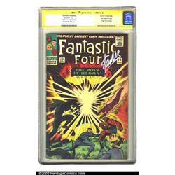 Fantastic Four #53 Stan Lee File Copy (Marvel, 1966) CGC FN/VF 7.0 Cream to off-white pages. Signature Series. An exploding cover puts the Fantastic Four on the defensive, and sets the stage for the story depicting the origin of the Black Panther. Stan Lee has signed this copy in silver on the top right of the cover. Overstreet 2002 FN 6.0 value = $30; VF 8.0 value = $73. Important notice: We expect to be auctioning lots at the rate of 200-250 per hour. Sometimes eBay Premier live bid software cannot keep up with that pace, so we strongly recommend that you place a realistic proxy bid now as insurance to avoid disappointment. Also please note that all Heritage/CAA lots purchased through eBay Premier carry a 20% Buyer's Premium. Please make sure you read the Terms and Conditions.