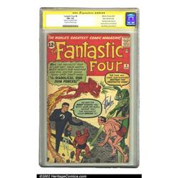Fantastic Four #6 Stan Lee File Copy (Marvel, 1962) CGC FN+ 6.5 Cream to off-white pages. Signature Series. An amazing early Fantastic Four guest-starring Doctor Doom and Sub-Mariner in the first Marvel villain team-up. A great copy with spectacular eye-appeal, Stan Lee signed the cover directly above Sub-Mariner. Overstreet 2002 FN 6.0 value = $393. Important notice: We expect to be auctioning lots at the rate of 200-250 per hour. Sometimes eBay Premier live bid software cannot keep up with that pace, so we strongly recommend that you place a realistic proxy bid now as insurance to avoid disappointment. Also please note that all Heritage/CAA lots purchased through eBay Premier carry a 20% Buyer's Premium. Please make sure you read the Terms and Conditions.
