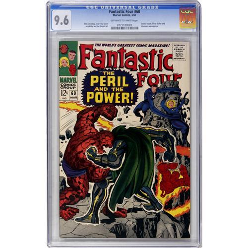 <B>Fantastic Four #60 (Marvel, 1967) CGC NM+ 9.6 Off-white to white pages.</B></I> Doctor Doom has the power cosmic! The Fantastic Four is in a battle royal! And you'll have a comic mint, er, mint comic, if you're the winning bidder here. Jack Kirby drew the cover and every page of the pulse-pounding tale. Overstreet 2006 NM- 9.2 value = $115. CGC census 3/07: 16 in 9.6, 2 higher.<BR><BR><b>Shipping:</b> Comics - Slabbed (certified) (<a target="_blank" href="http://www.heritageauctions.com/common/shipping.php">view shipping information</a>)