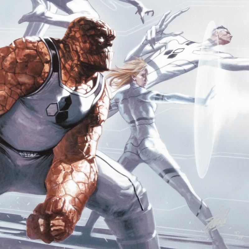A piece of comic book history, this limited edition, from original art by Joe Quesada, depicts the heroic team of the Fantastic Four. Joe Quesada gained renown in the comic book by drawing several Valiant Comics titles. In 1998, Quesada started a series for Marvel called Marvel Knights, the success of which launched him into the editor-in-chief seat and then Chief Creative Officer in 2010. "Fantastic Four #600" is a numbered limited edition giclee on canvas by Joe Quesada presented by Marvel Comics, hand signed by the great Stan Lee! Includes Certificate of Authenticity! Measures approx. 18" x 27" (image).