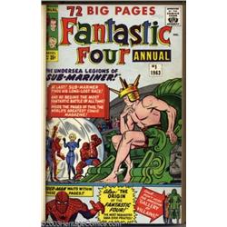 Fantastic Four, Bound Volumes of #1 - 80 (Marvel, 1963-68). This remarkable set of 8 bound volumes contains an impressive run of Fantastic Four comics, with about 10 issues per volume, plus the corresponding Annuals. The first four volume are signed by Jack Kirby inside the flyleaf. While most of the comics were trimmed during the binding process, the comics in the last two volumes were bound without trimming. Many issues have the appearance of VF or better copies, with good page quality, but several of the earlier issues show heavy wear and tape repair. Bidders should also note that issue #48 has a long tear through the back cover that was repaired with tape. These gorgeous books have scripts by Stan Lee, pencils by Jack Kirby, and inks by such talents as Dick Ayers, George Bell, Steve Ditko, Chic Stone, Vince Colletta, and Joe Sinnott. Milestone events include the first Silver Age Sub-Mariner, first Watcher, first Galactus, first Silver Surfer, first Inhumans, first Black Panther, first Warlock, and much, much more. Don't miss this opportunity to add these beautiful books to your collection. Overstreet 2003 VG 4.0 value for the group = $6,866. Important notice: Heritage usually auctions material at the rate of 200-250 lots per hour. On some occasions eBay Live bid software or the Internet may not be able to keep up with the pace of the auction. We recommend placing a realistic absentee bid now as insurance to avoid disappointment. Occasionally the auctioneer may eliminate or reject an eBay Live bid, and the auctioneer may also reopen a lot after the close of the eBay live bidding (usually because we missed an audience bid), and may reject your bid even if it shows you as the winning bidder. By bidding via eBay Live, you agree that Heritage may award the lot to another bidder at its sole discretion under the circumstances described above or any other reasonable circumstances. Also please note that all Heritage lots purchased through eBay Live carry a 20% Buyer's Premium. Please make sure you read the Terms and Conditions before you bid.