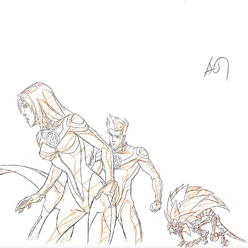 Fantastic Four by Marvel Comics Original. All available information is listed in the description and shown in the photo. "Fantastic-4" is an original production drawing on animation paper by Marvel Comics. Includes Letter of Authenticity. Measures approx. 14" x 10" (image).