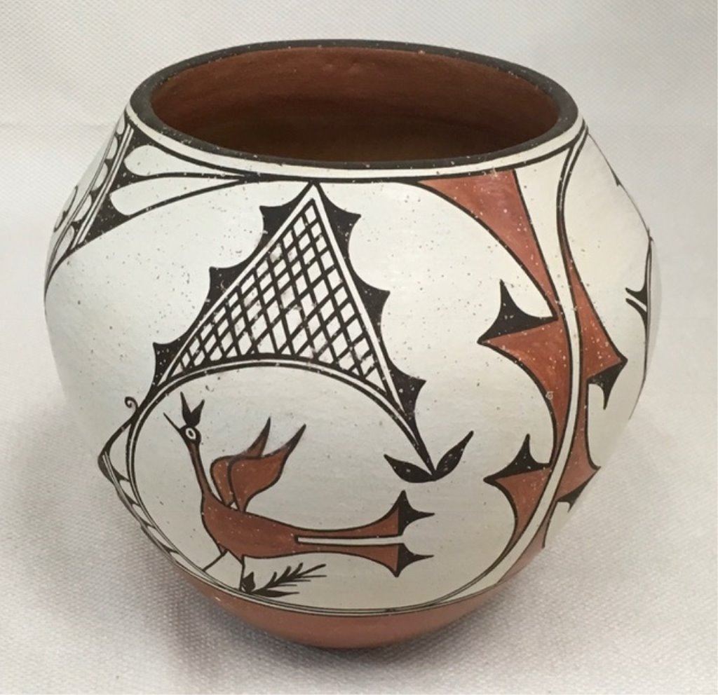 Hand Coiled Earth Fired And Hand Painted. 9''t X 9''w