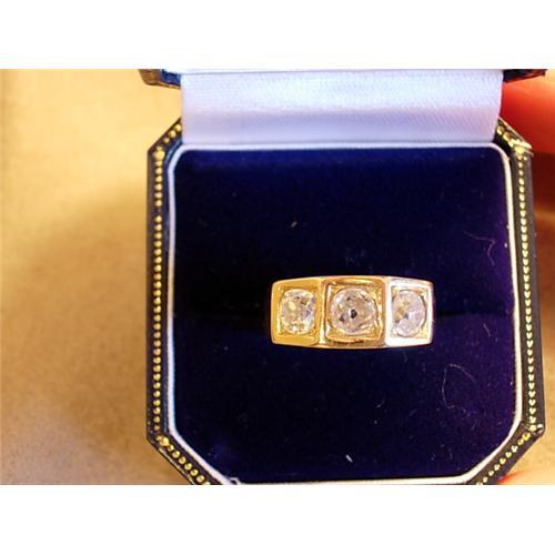 Fantastic Victorian three stone diamond and 14kt yellow gold ring set with three Old Mine Cut Diamonds .50 .76 .50 VS2-I1 clarity near colorless, slight color wonderful chunky old cut diamonds set in an beautifully engraved heavy thick yellow gold mount. GREAT GREAT LOOK!!!!! Wonderful antique ring.