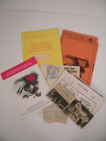 A true ground breaking and stunningly original sci-fi movie, "Fantastic Voyage (1966) influenced a whole generation of filmmakers, including Stephen Spielberg, George Lucas and Robert Zemeckis. The story of a group of doctors and scientists who are miniaturized and injected into an important diplomat in order to do sensitive brain surgery to save his life, it created all the visual splendor and tension of an outer space adventure inside the human body! This is an extremely rare original "Pressbook" from legendary 20th Century Fox Publicity Director Howard Newman (who virtually invented the "Pressbook"!) containing a plethora of actual original newspaper and magazine clippings, notes, study guides and other assorted fascinating press based memorabilia. Because Spielberg and Zemeckis were so influenced by this classic feature, also included is the original Academy Awards Press Screening program for "Back to the Future". Please note that the "Voyage" press book shows signs of age. The "Future" program has a slight "wear blemish" on the front, and also shows some signs of age.