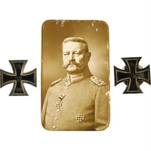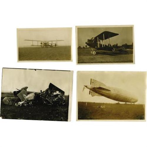 <B>Fantastic WWI Aviation Photography Archive Including Two WWI Iron Crosses.</B></I> A huge archive of period images that includes aircraft, tanks, ships, Zeppelins, artillery, soldiers- alive and dead, battlefield scenes, aerial photography, scenes of destruction, group shots, and a variety of scenes of the carnage of war. The photographs are in a variety of sizes and formats including photo post cards, official photos, and personal snapshots. All images are in at least very good condition. Included with the photographs are two very nice WWI Imperial First Class Iron Crosses. One cross is the standard pin-back variety marked “H.B.G. 800” on the pin. The cross has acquired a nice patina to the silver, the catch is complete but bent flat, otherwise the cross is in very good condition. The second cross is a vaulted screw-back style, marked “800” on the reverse of the lower arm of the cross. This cross has also developed a nice patina and is in very good condition. The images contained in this archive will provide hours of research that may yield unexpected treasures. <I>From the collection of Cliff Henderson.</B></I><BR><BR><b>Shipping:</b> Miscellaneous Collectibles, Larg (<a target="_blank" href="http://www.heritageauctions.com/common/shipping.php">view shipping information</a>)