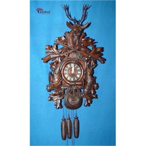 ABOUT THIS CUCKOO CLOCK :SIMPLY EXQUISITE!!!We are very excited to offer you this marvelous cuckoo clock that dates from the first quarter of the 20th C. (c. 1910).Take a moment and get a look at one of the most fabulous cuckoo clocks we have had the pleasure to offer for auction in some time!!This huge cuckoo clock of 32 Inches tall is made of the finest birch wood and has the warm gorgeous patina of walnut.We bought this clock out of a castle in the South of Germany near Munich.The dimensions are: Height: 32 Inches, Width: 20 Inches and Depth 14: Inches.The moment you hear that distinctive call as the cuckoo pops out of the little door in the carved wood, you'll be transported back to a time of great clock making.Every half and full hour the clock plays a different melody while a musician coming out the other little door. The clock is carved with two rifles, a rabbit with a pheasant, many leaves, a hunting horn, and on the top a deer head with wooden antlers.The rabbit is 12 Inches tall and the pheasant is also 12 Inches!!This clock is very special because it has a 8 DAYS movement and everything is in good working order.Regarding shipping we will pack the clock in a wooden crate so you will receive it without any damage. Shippingscosts to the U.S.A. are 150 US$. After payment you will receive the clock in about 5 days. This is a very nice cuckoo clock for the collector or someone wanting an unusual cuckoo that no one else has!!Thank you for looking this marvelous cuckoo clock.Sincerely,Wil ...